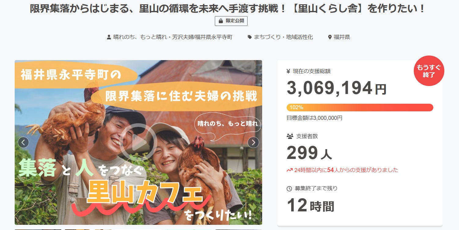 この最終日にさらなる里山くらし舎の追い風を爆風にするために、みなさまに協力してほしいです!