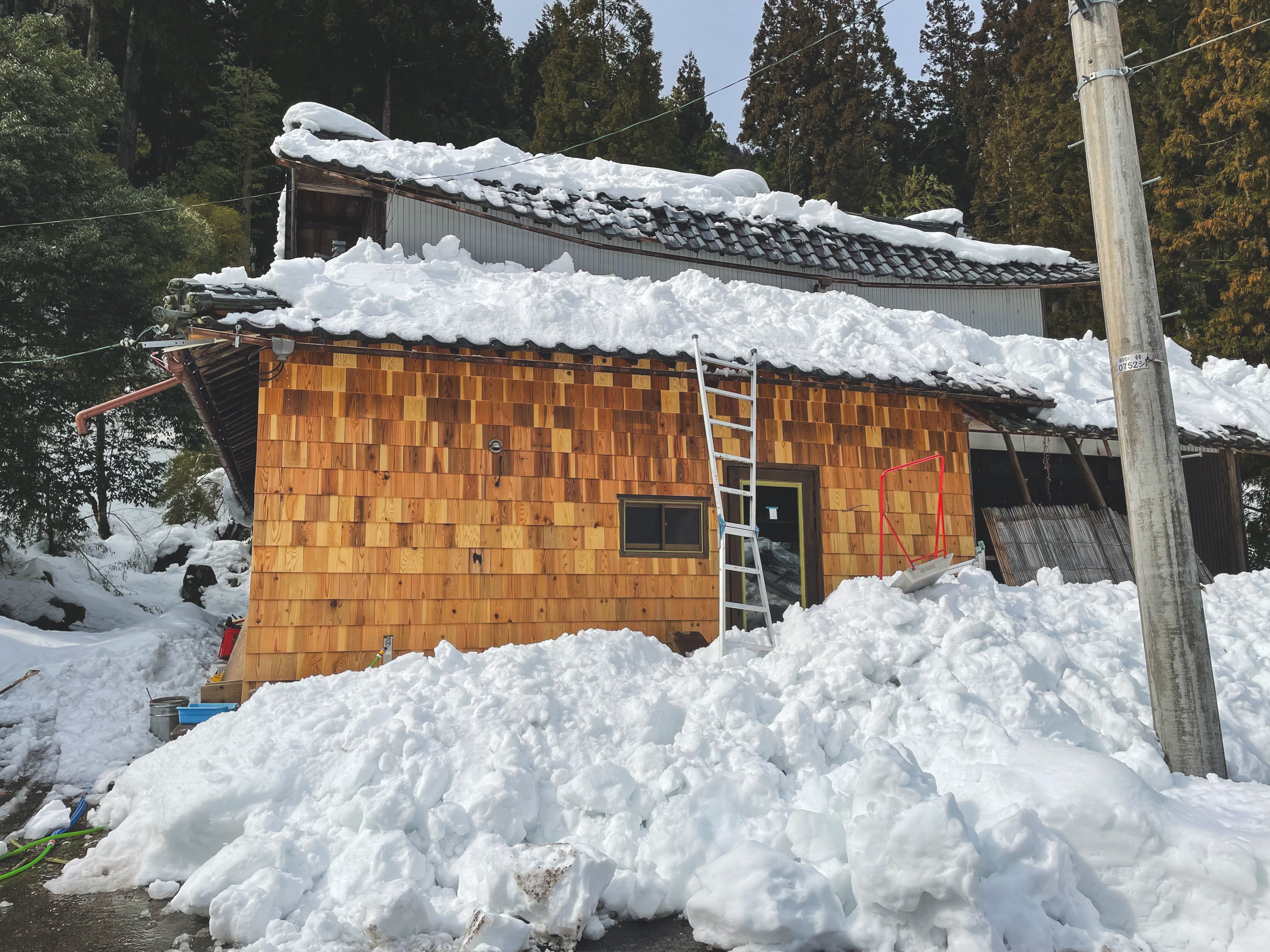 今年の冬、大雪で改修している古民家の屋根が折れました。大きな音がして、外に出ると、屋根が沈んでいました。