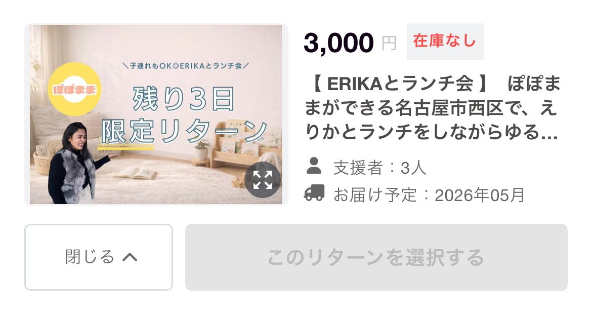 今週から対象のリターン(下記参照)をご支援いただいた皆さまへ、順に開催日程のご案内メッセージをお送りしております。