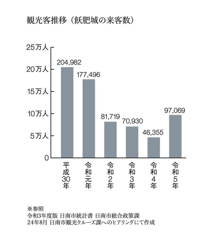 「九州の小京都」と呼ばれる飫肥(おび)は、豊かな自然に恵まれた場所ですが、観光客はコロナ前の半分にまで減少しており、街から活気が失われていくのを肌で感じています。