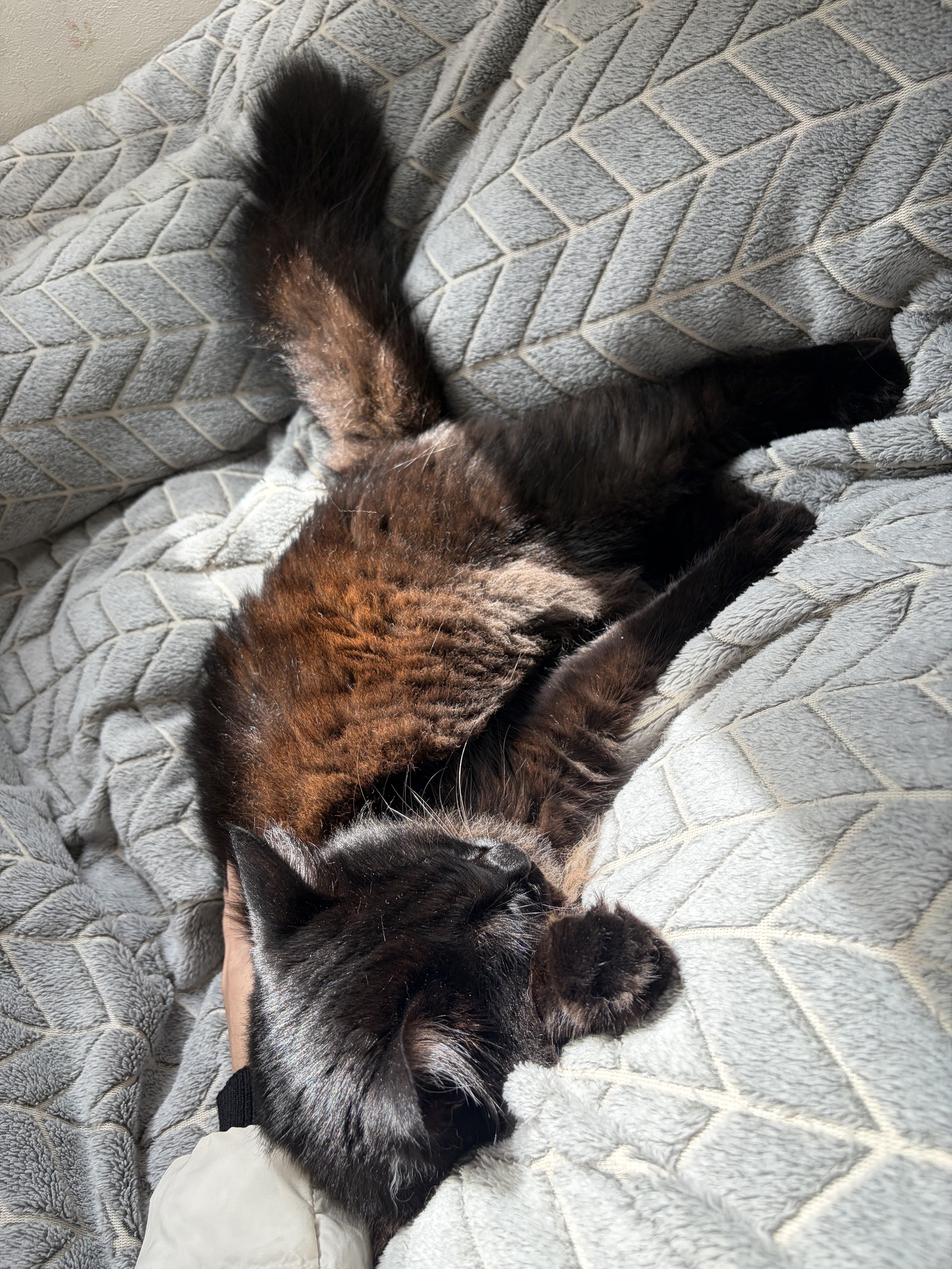 その毛を毛づくろいで飲み込んでしまい、フェルト状の毛玉として吐き出すことがあります。