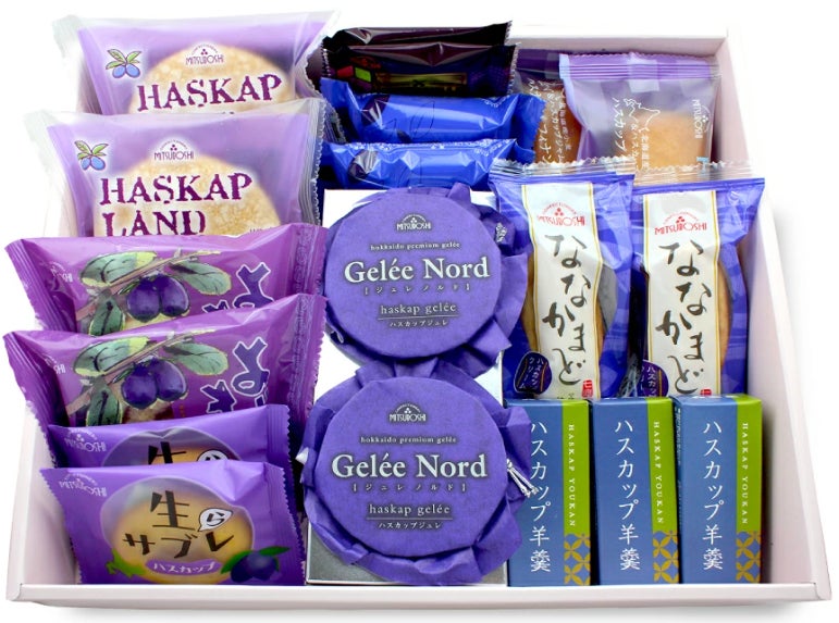 ●セット内容 ハスカップランド×2個、よいとまけひと切れ ハスカップ×2個、北恋菓(ハスカップ)×2個、ハスカップラングドシャ×2個、ゆのみのんの×2個、ジュレノルド×2個、ハスカップフィナンシェ×2個、ななかまど(ハスカップ)×2個、一口ハスカップ羊羹×3個