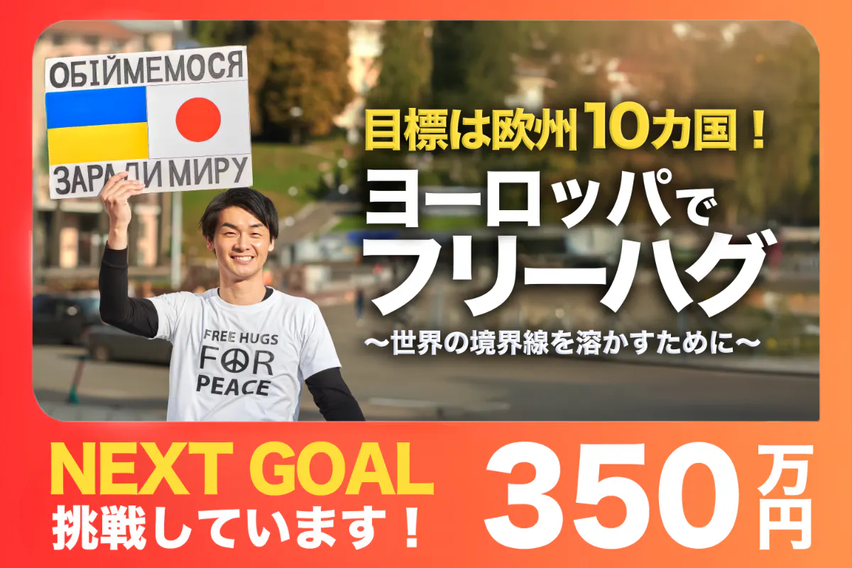 2026/04/04 18:59皆さんの温かいご支援により、本日、第1目標の250万円を突破しました!2011年から15年。44カ国を歩き続けてきた僕に、新しい旅への切符を授けてくださり、本当に、本当にありがとうございます!ここからが、本当の冒険の始まりです。しかし、正直に言わせてください。まだ手放しでは喜べません。今回のプロジェクトの真のゴールは、「欧州10カ国」すべてを巡り、ハグで境界線を溶かしていくことです。今の250万円は、いわば「ようやく欧州行きのチケットを掴み取った」段階。このままでは、予定していた10カ国すべてを回りきることは叶いません。第2目標【350万円】へ向けて再始動します!10カ国すべての笑顔を皆さんに届ける約束を果たすため、本日より次なるステージへ挑戦します。ニュースが映し出さない「人間の温もり」を証明するこの旅を、一緒に形にしてくれる「仲間」として、引き続き背中を押していただけたら嬉しいです。次は350万へ。一歩ずつ、確実に10カ国全ての地へ。一緒に行きましょう!▼10カ国制覇への道のり(詳細・ご支援はこちら)https://camp-fire.jp/projects/927549/view もっと見る
