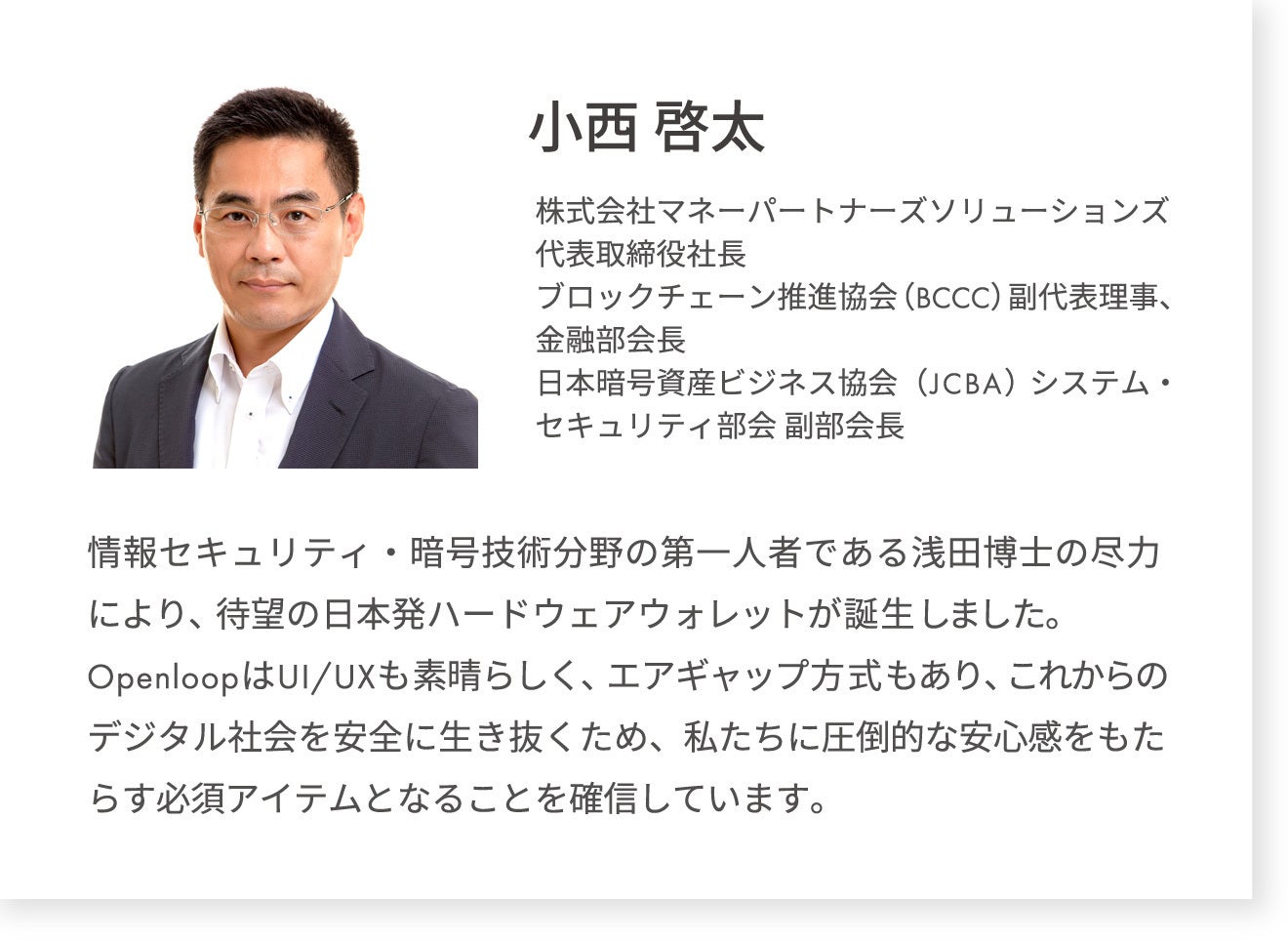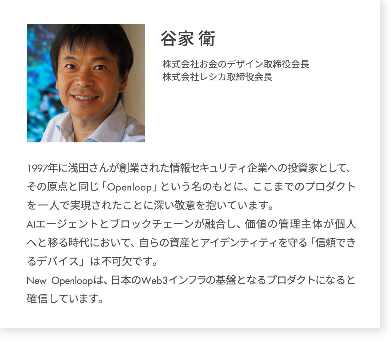 Openloopは、私たちが描く「デジタル経済のインフラ構築」における、最初にして最も重要なピースです。日本の皆様に、世界基準のセキュリティと、日本基準の安心をお届けします。
