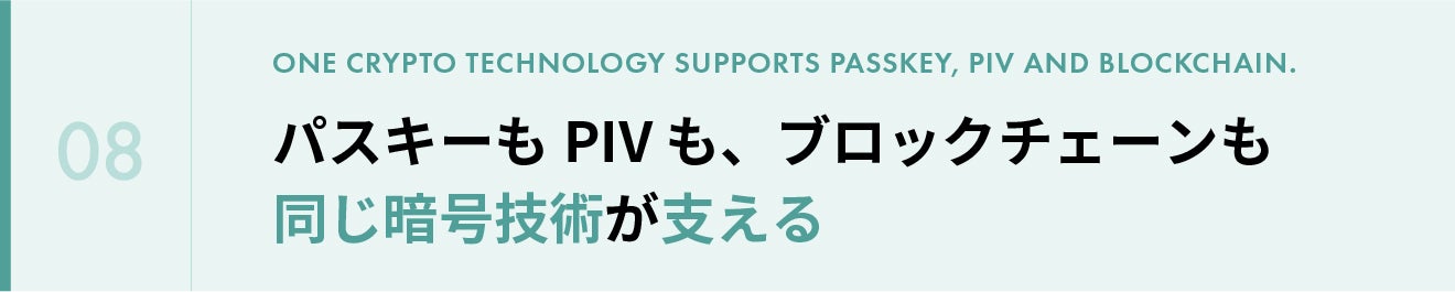つまり、パスキー認証もスマートカード認証もブロックチェーン署名も、その根幹を支えている暗号技術は同じなのです。違うのは、それをどのプロトコルで、どの用途に使うかだけ。
