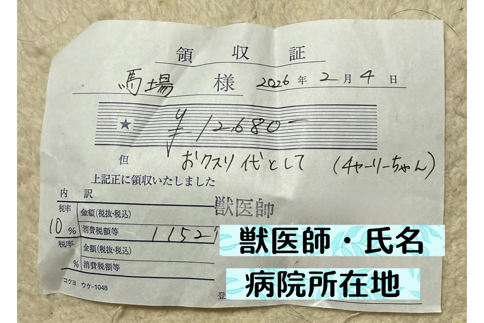 1月~2月の3名の保護猫ちゃんの、継続医療費の明細です。