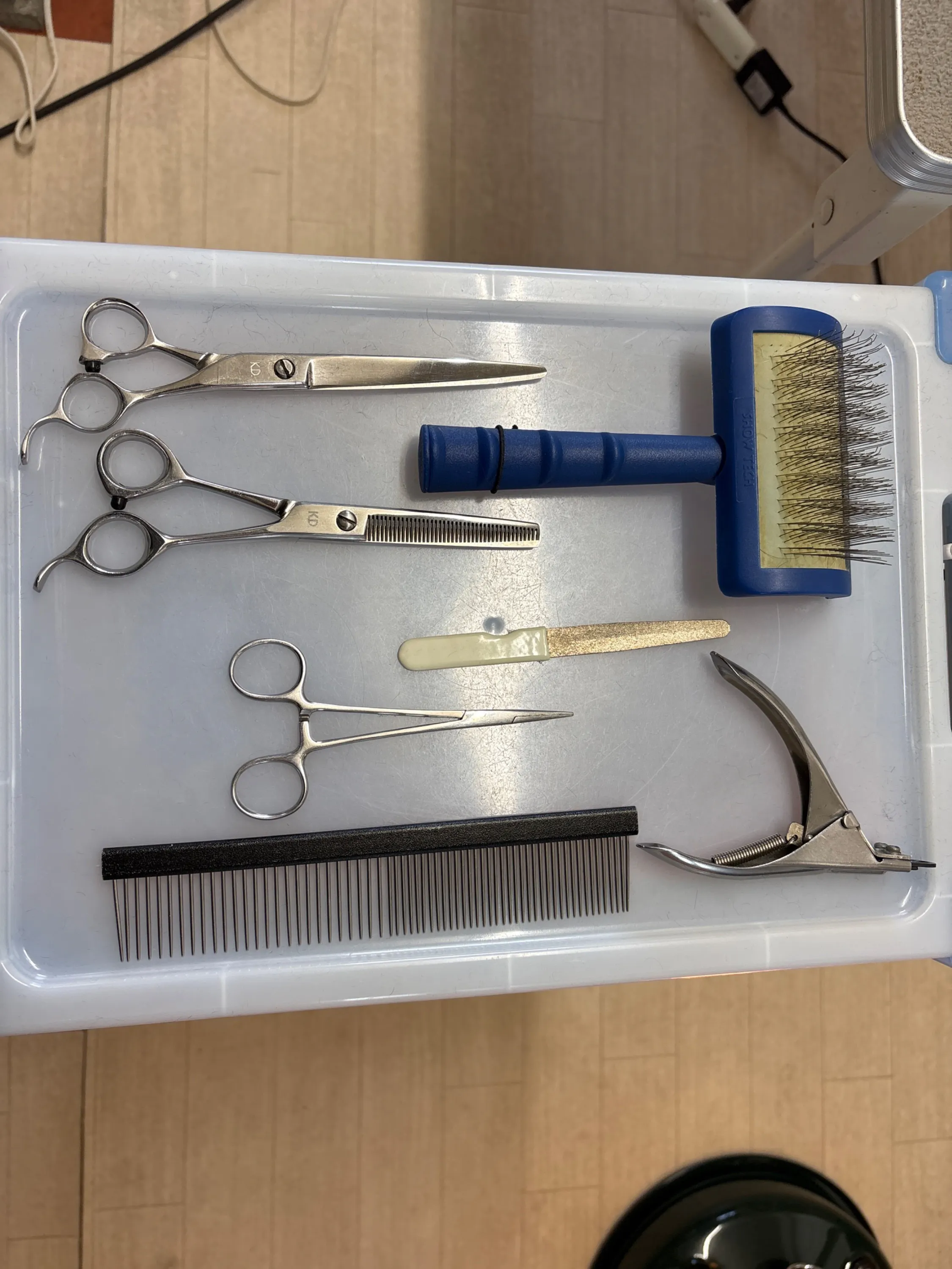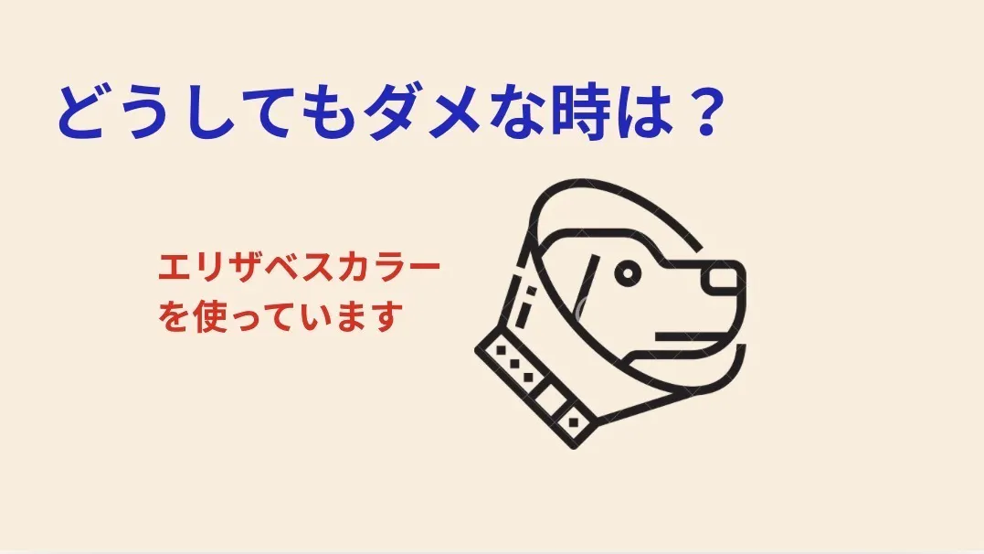 エリザベスカラーの方が落ち着いてトリミングさせてくれます。上手に出来たら、その都度ほめてあげる事!これを徹底しています。
