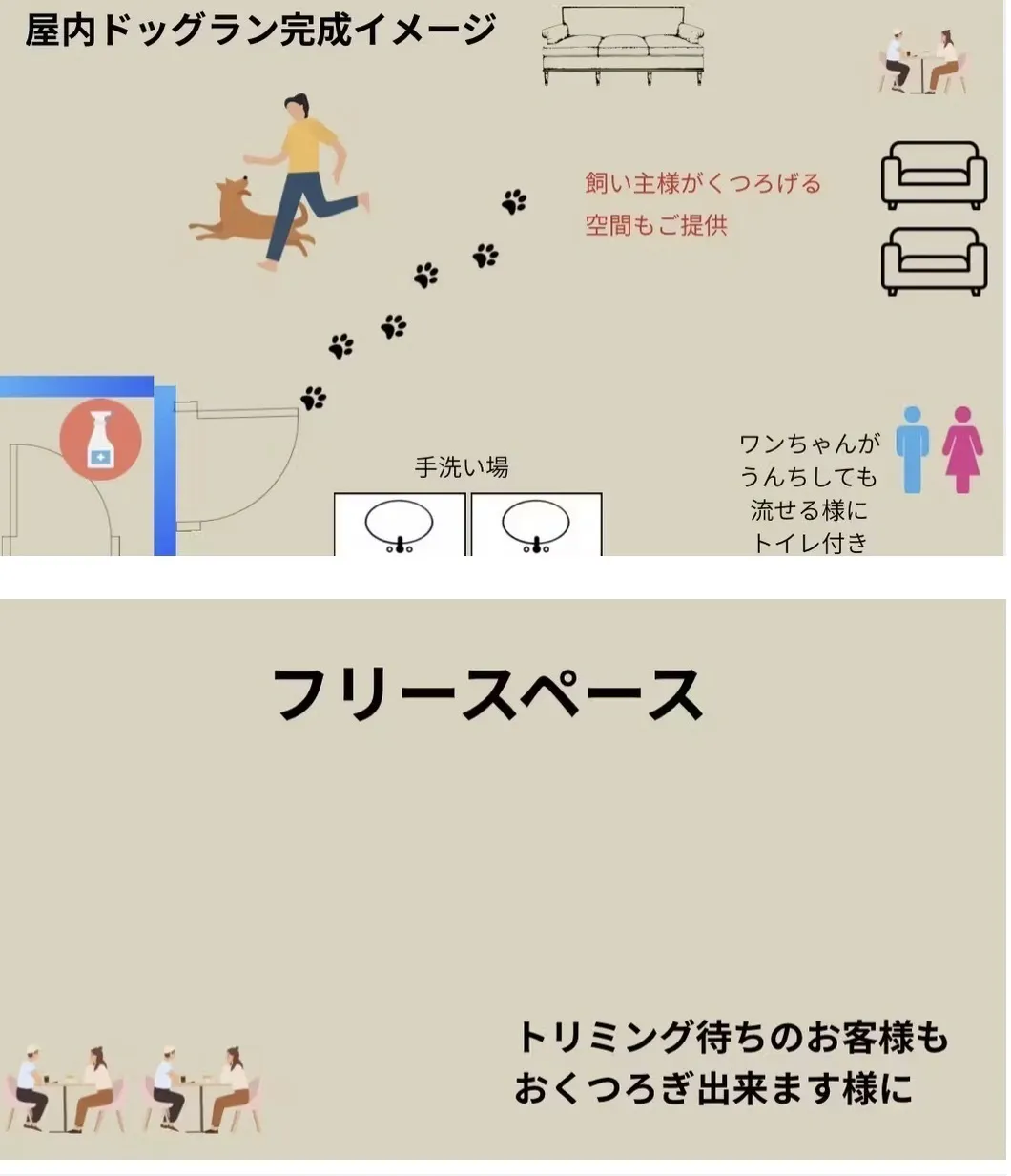 そこで、サロンの新設と共に屋内ドッグランの併設も計画しています。