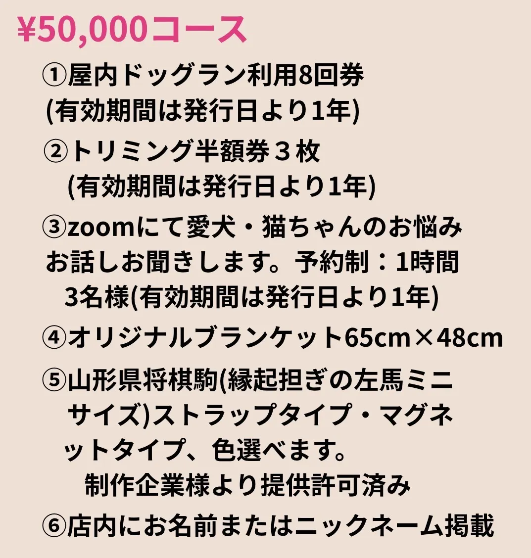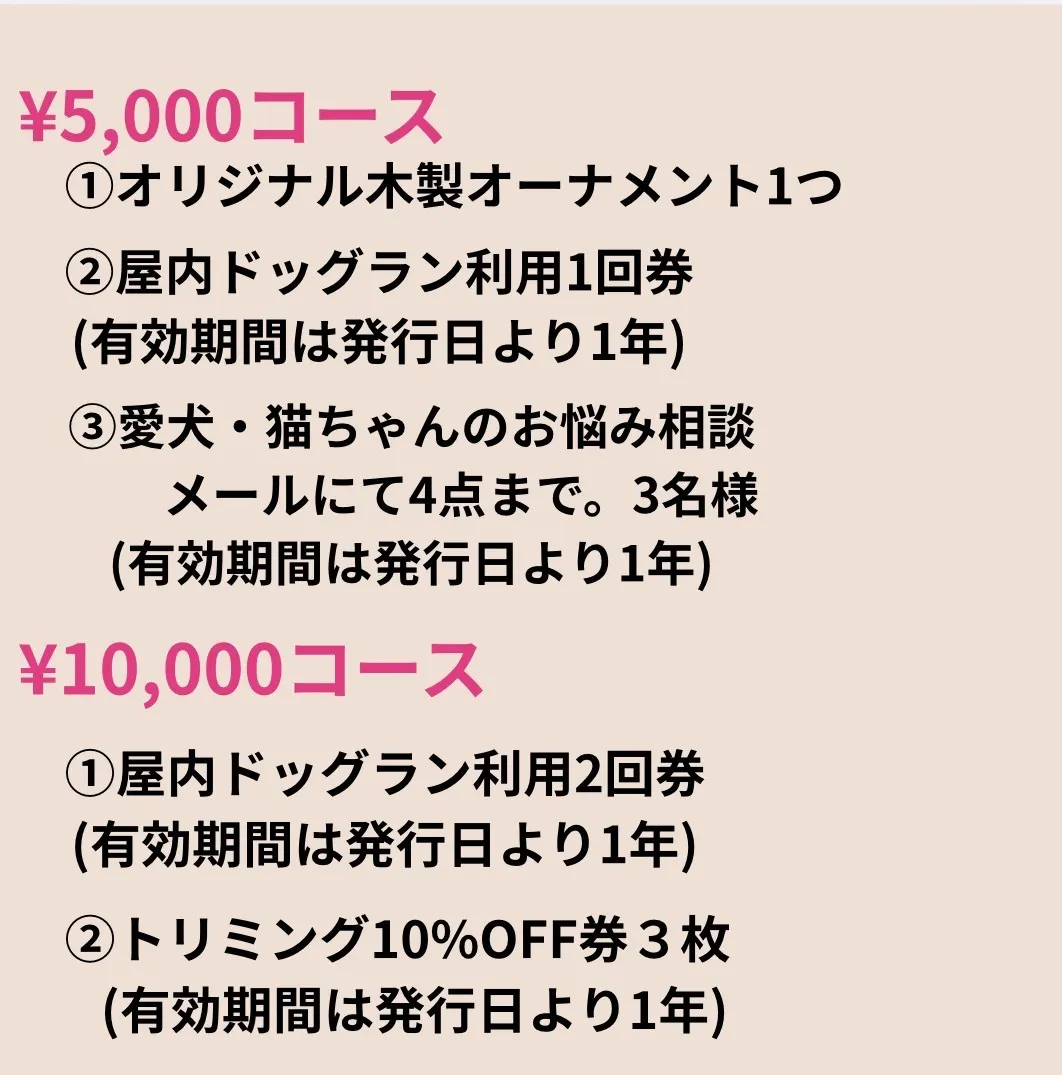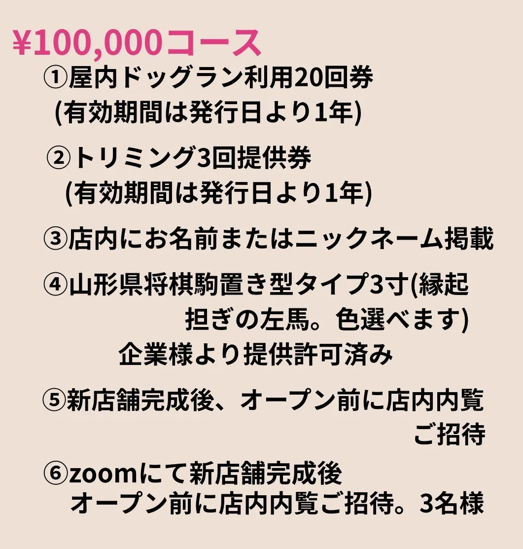 屋内ドッグランについては子供の部活引退後、 R9年の夏頃を検討しております。状況を見なが ら活動報告の中でお知らせしていきます。リタ ーン品はクラウドファンディング終了後、同様 に順次発送します。