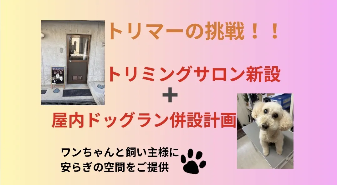 トリミングサロン新設につきましては、前半でお話しした通りです。今の場所では、動物愛護管理法の改正により、約2年後の更新が出来ない恐れがあります。今、私のサロンに通ってくれているお客様がいる限りはトリマーを続けていきたいです。また、お客様に「閉業します」とお伝えするのが申し訳なくて心苦しい…飼い主様が安心して預けられるサロンにしたいです。