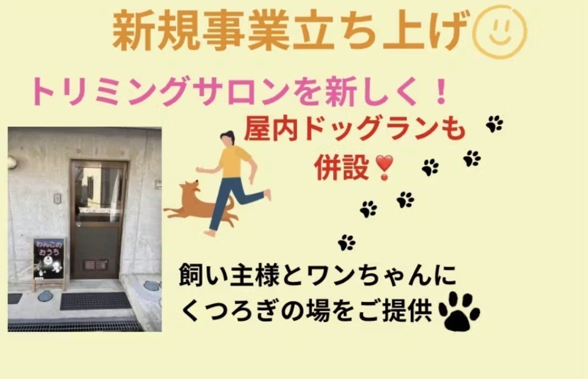 トリミングサロン新設につきましては、前半でお話しした通りです。今の場所では、動物取扱業法が厳しくなってきている近年、違反してしまい更新出来ない恐れがあります。