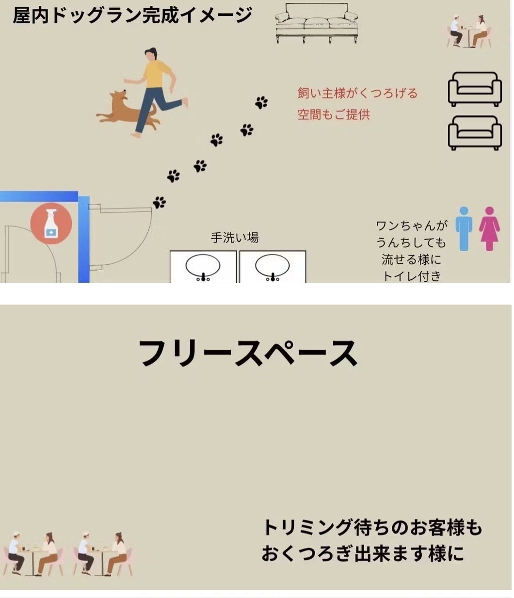 トリミングサロン拡張計画:屋内ドッグランと快適お散歩施設