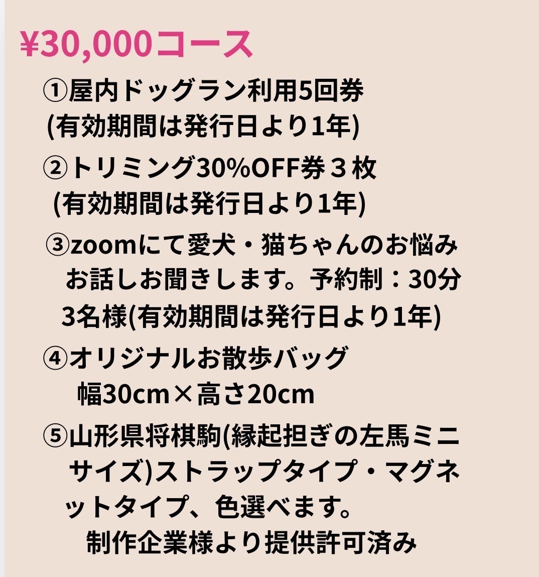 ・トリミングを中心とし、屋内ドッグランで上乗せしていく。