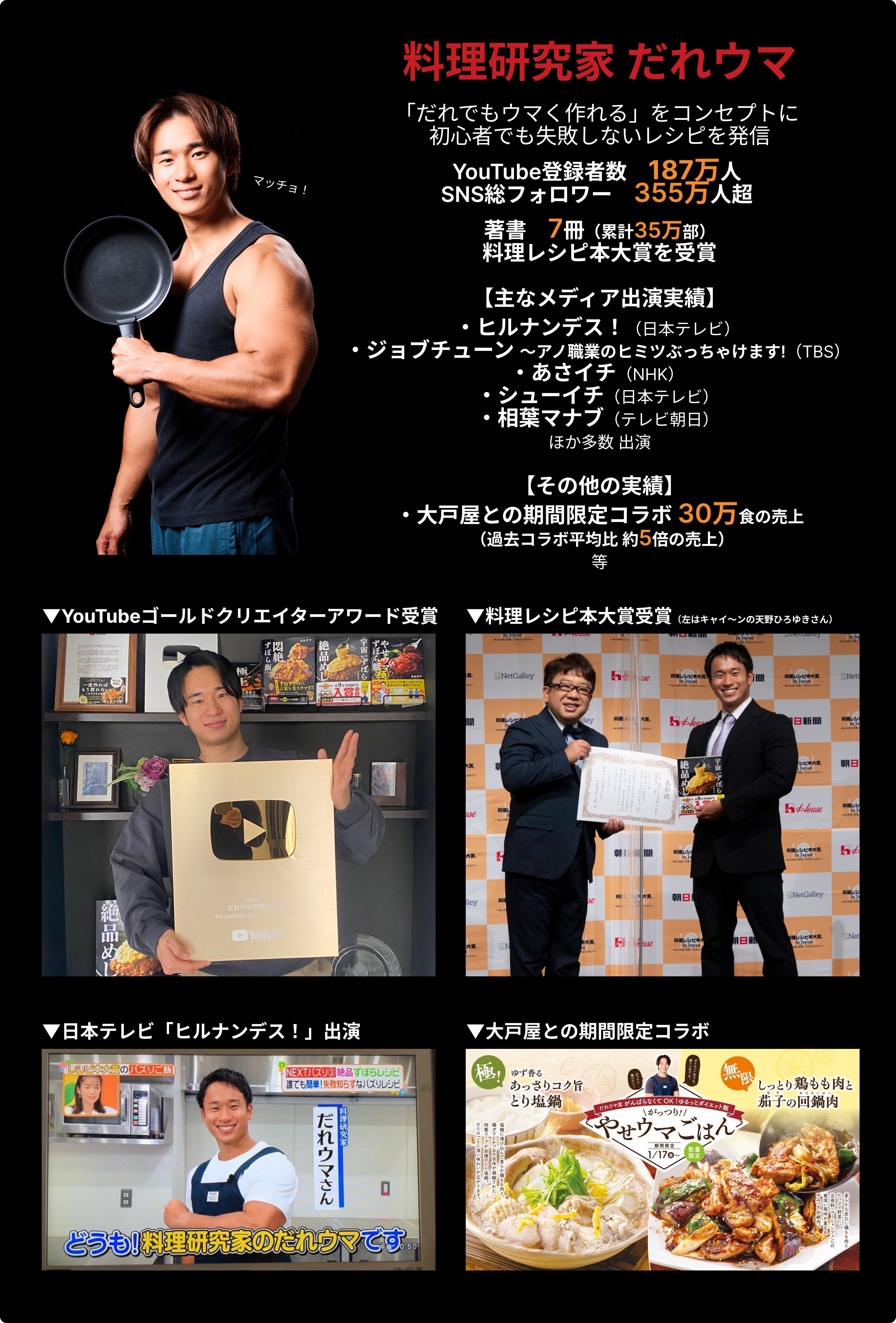 僕は、小学生の頃から料理をしてきました。大学生からは料理研究家として、YouTubeやSNS、レシピ本を通して発信を続けています。