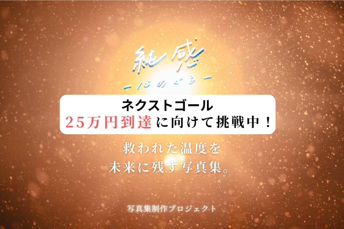 2026/03/02 19:24こんばんは。asajunです。2月26日、開始からわずか1週間でクラウドファンディングの目標金額を達成することができました。本当にありがとうございます。大阪から福島に移住して、もうすぐ6ヶ月。手術室看護師からフリーランスのPhotographerへ。そして、病気もまだ完治していない中での挑戦でした。不安がなかったわけではありません。それでも今、この土地で作品と向き合いながら濃密な日々を重ねられていることを幸せに感じています。ここまで来られたのは、応援してくださる皆さまの存在があったからです。この達成は、ひとつの節目。でも僕にとっては、ここからが本番です。写真集をつくるだけでなく、写真展という“空間”そのものをもう一段あたたかな場所にしたい。「なんだか心があたたまる」「なんだか癒やされる」そんな時間を、もっと確かなものに。写真だけでなく、他の芸術のエッセンスも取り入れながら、空間全体で“純感”を届けたいと考えています。簡単ではないと思います。それでも、やってみたい。移住してから、僕が大切にしていることがあります。立ち止まるよりも、一歩でも進むこと。誰かが本気で進む姿は、きっとどこかで誰かの力になると信じています。ネクストゴールを設定しました。25万円を突破した場合、写真集のページを10ページ増やします。より濃く、より深く。手に取ったとき、あたたかさが長く残る一冊に。35万円以降の内容については、改めてお知らせいたします。そして今回、新たに・【心めぐる、マンツーマンセッション】・【純感 − 心めぐる − 公式エディション(A3・額装)】という特別なリターンもご用意しました。【心めぐる、マンツーマンセッション】展示空間の中で、作品を通して、あなたの心と向き合う30分。元看護師として大切にしてきた「聴くこと」を軸に、あなたの中にある感情や感性を丁寧に言葉にしていきます。セッションで生まれた想いは、あなただけの言葉としてポストカードに綴ってお渡しします。限定3枠のみのご案内です。必要としている方に、静かに届けば嬉しいです。【純感 − 心めぐる − 公式エディション(A3・額装)】「純感 − 心めぐる −」で展示した額装作品3点より、1点をお選びいただける限定5部の公式エディションです。今回の展示を象徴する作品を、額装した状態でお届けします。届いたその日から、そのまま飾っていただけます。展示の空気を、あなたの空間へ。もしよろしければ、このプロジェクトをもう一度大切な誰かへ届けていただけたら嬉しいです。あなたのひと言が、きっとまた、新しい純感を生みます。最後まで、一緒に歩いていただけたら幸いです。 もっと見る
