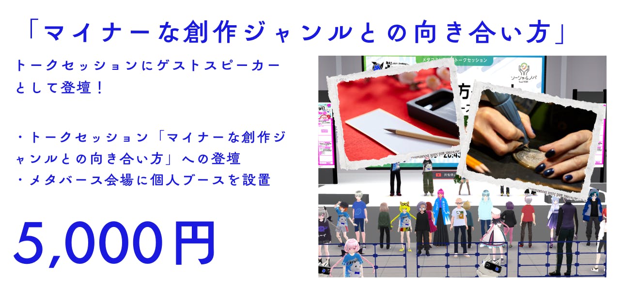 会場:Vket Cloud 特設メタバース会場(スマホ・PCブラウザからアクセス/アプリ不要)