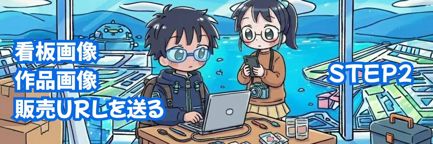 看板画像1枚+作品画像(最大4枚)+販売ページのURLを運営に送信。