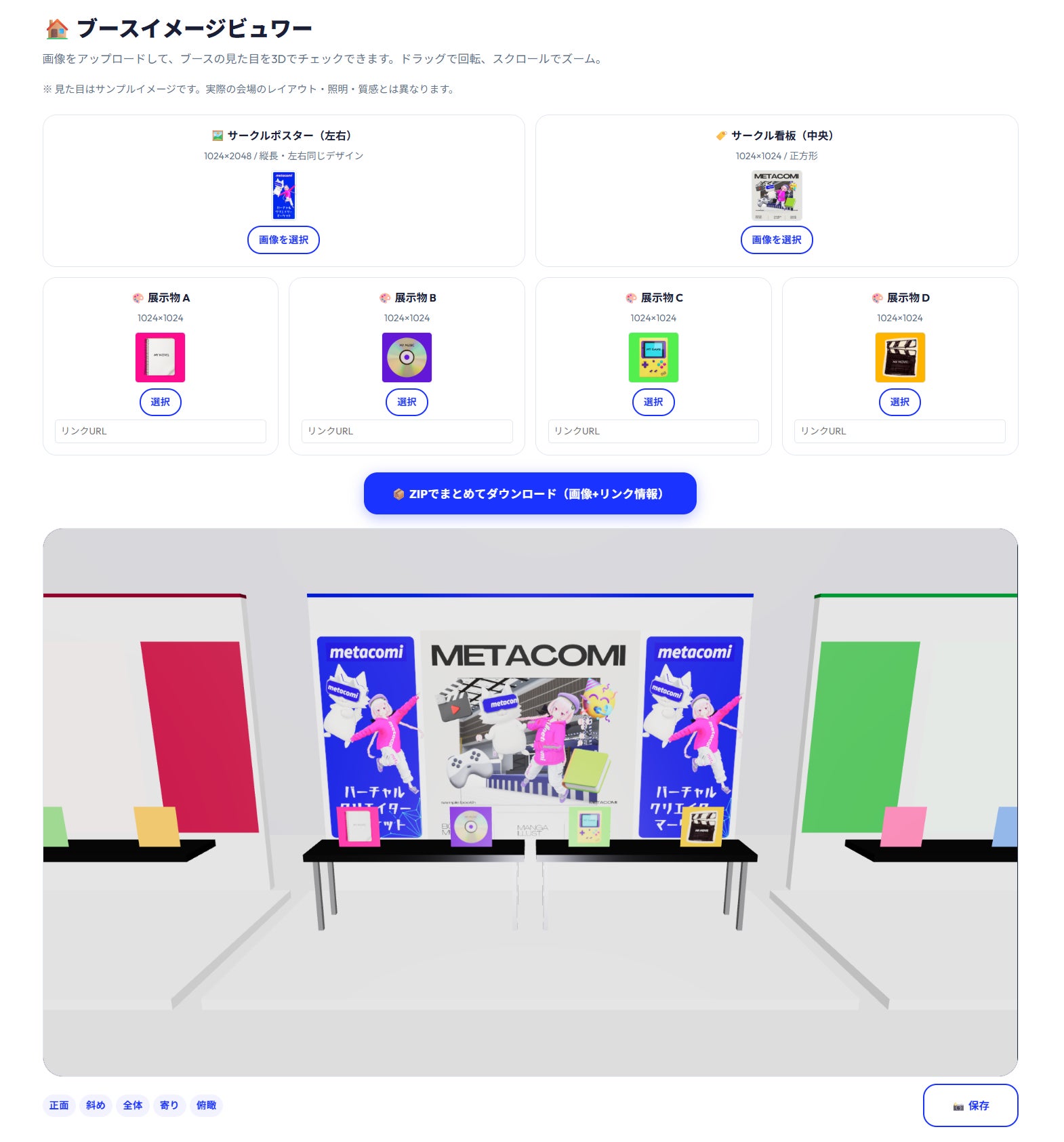 先日公開した「展示ブース画像メーカー」に、作った画像が3Dのブース上でどう見えるかを確認できる「ブースイメージビュワー」を追加しました!