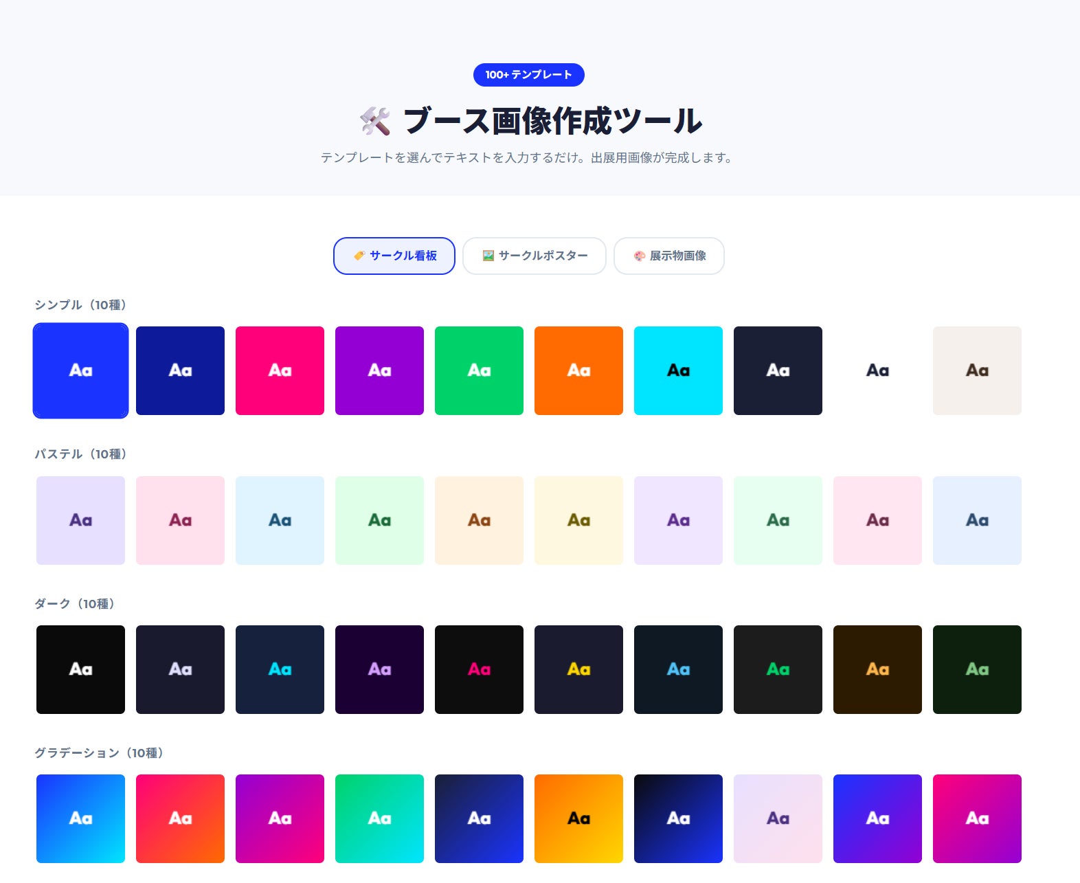 テンプレートを選んでテキストを入力するだけで出展用画像が作成できる「ブース画像制作ツール」をご用意しています。