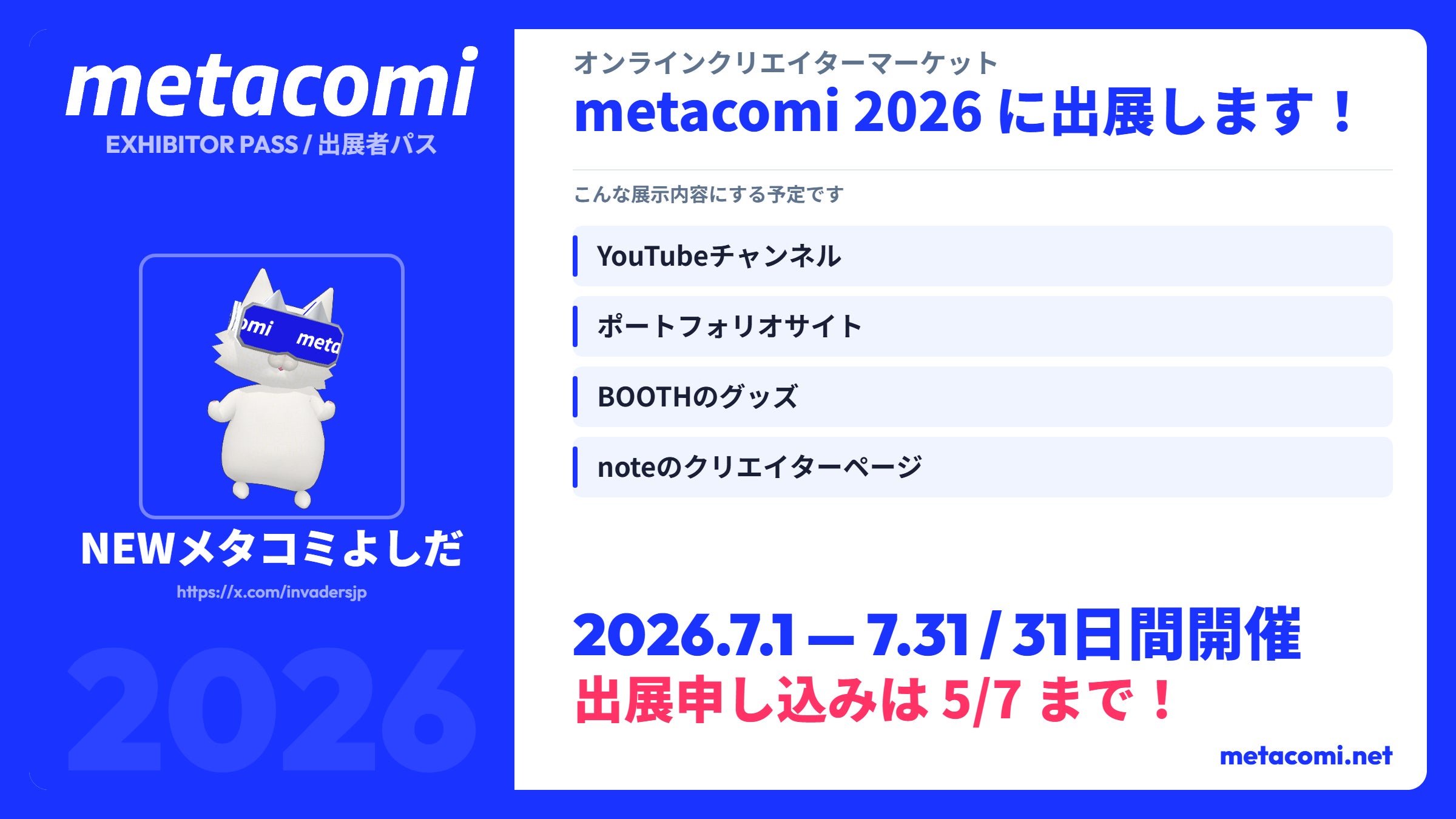 2026年7月、私たちは1ヶ月間のオンラインクリエイターマーケット「metacomi 2026(メタコミ 2026)」を開催します。