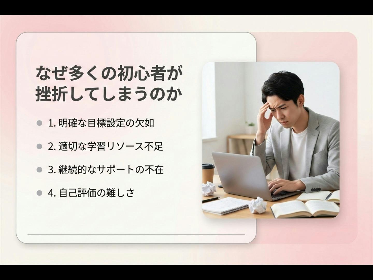 でも今、多くの初心者が情報の多さに迷い、最初の一歩でつまずき、 本来なら手にできるはずの“できた”の喜びにたどり着けていません。