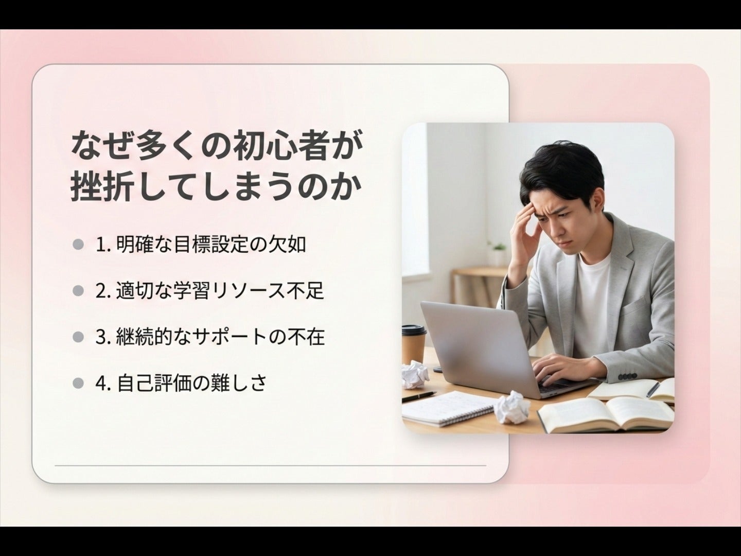 でも今、多くの初心者が情報の多さに迷い、最初の一歩でつまずき、 本来なら手にできるはずの“できた”の喜びにたどり着けていません。