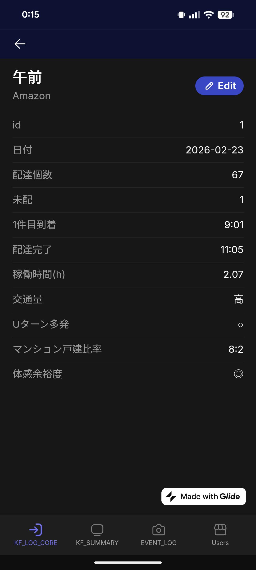 ということでノーコードツール(Glide)を使って配送ログアプリを作ってみました。