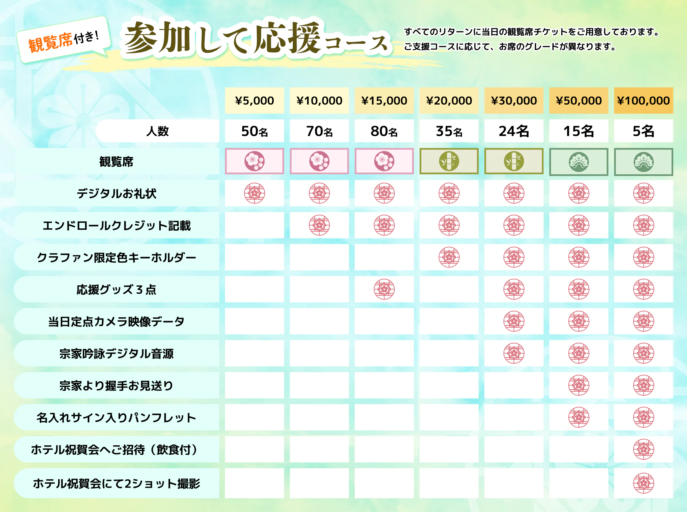 新流派の幕開けを、最前線で目撃し、共に祝っていただく「体験型」の応援コースです。一般抽選に先駆け、お席を確実に確保させていただきます。