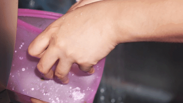 袋を簡単に裏返せる設計だから、奥までしっかり洗えてすき間汚れも残りにくい。 シリコン特有の「洗いにくさ」「乾きにくさ」に悩まされることなく、毎日の後片づけがスムーズに。