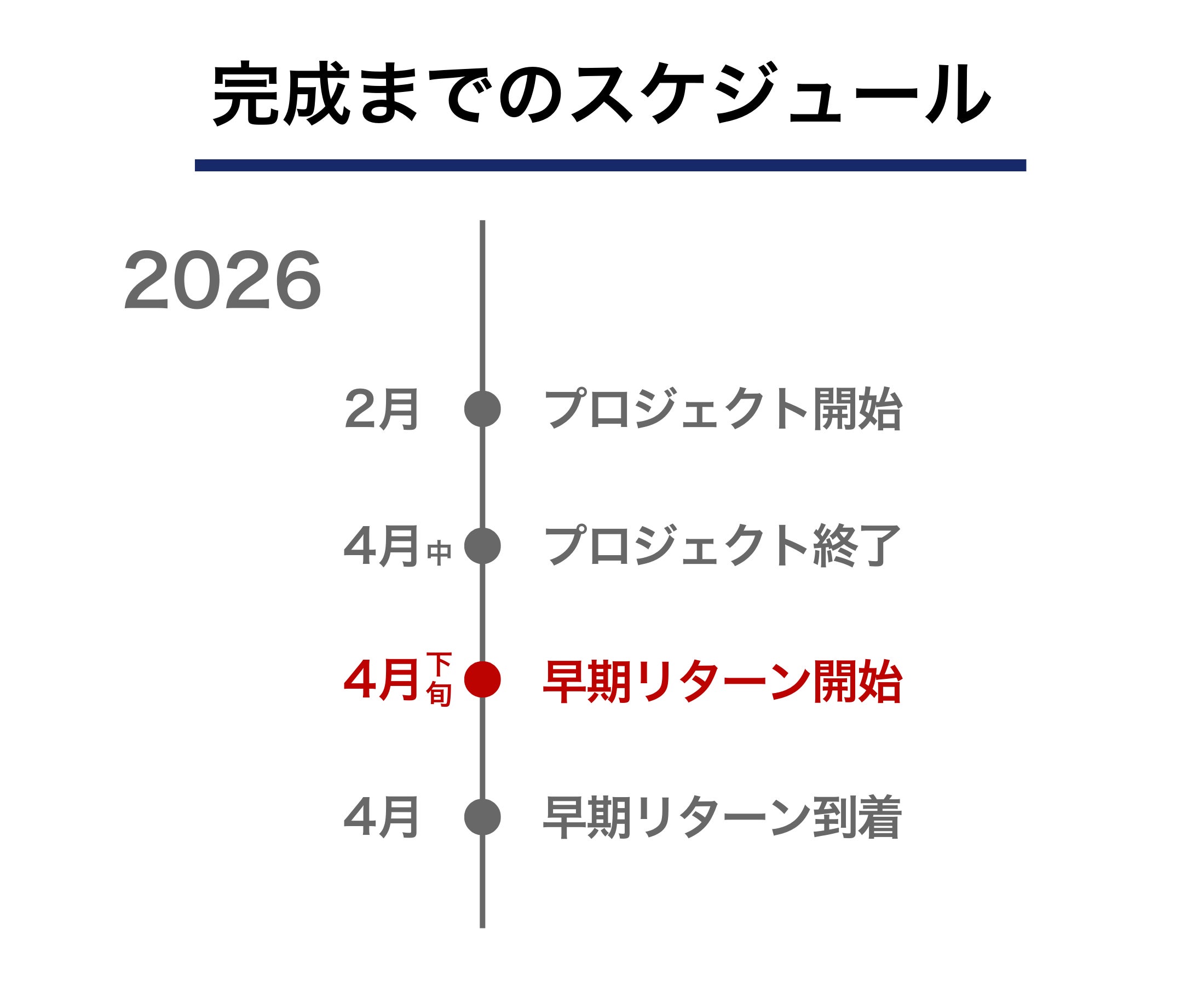 ※本文中に記載させていただいたスケジュールは、あくまでプロジェクト公開時点の予定です。クラウドファンディングを経て輸入を行う性質上、配送遅延のおそれがございます。