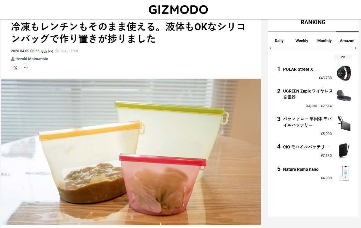 2026/04/14 21:00皆様、こんばんは!Bright DIYチームです。4月9日、GIZMODOで「シリコンバッグ ZF1.5」を紹介して頂きました。話題:冷凍もレンチンもそのまま使える。液体もOKなシリコンバッグで作り置きが捗りました興味がある方、是非下記のリンクからアクセスしてみてください。https://www.gizmodo.jp/2026/04/machi-ya-delione-review-928167.html【レビューの一部抜粋】〈実際にカレーなどで試しましたが、液漏れしにくい密閉構造と手入れのしやすさが想像以上に快適でした。使い方はよくあるビニールバッグと同じですが繰り返し使えるのがポイント。メーカー公称値では毎日使っても10年以上使える耐久性(約5000回)とのこと。倒れたくらいでは漏れることはまずありません。あとは器に盛り付けるだけ。下味付けての保存など、作り置きがしっかり捗ります。裏返して洗えるのでカレーなど油分の多いメニューでも隅々までキレイ。もちろん食洗機にも対応しているのでお手入れはとっても簡単でした。〉ご興味のある方はこの機会をお見逃しなく!https://camp-fire.jp/projects/928167/view4月15日まで販売期間は続きますので、ぜひSNSでのシェアや身近な方にもおすすめしていただけると嬉しく思います。#siliconbag #brightdiyどうぞよろしくお願い致します。BRIGHTチーム もっと見る