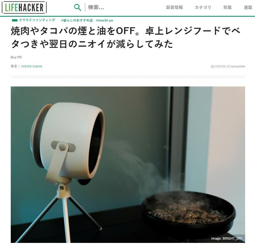 2026/04/01 21:00皆様、こんばんは!Bright DIYチームです。3月28日、GIZMODOで「CORDLESS PORTABLE HOOD」を紹介して頂きました。話題:換気扇をテーブルに置くという発想。おうち焼肉や鍋パの煙&ニオイ対策が変わりそう興味がある方、是非下記のリンクからアクセスしてみてください。https://www.gizmodo.jp/2026/03/machi-ya-airhood2-start-928318.html【レビューの一部抜粋】〈見た目は小さい扇風機のようですが、中身はポータブルなレンジフードで料理のすぐ近くで煙や油を低減できる優れモノなんですよ。油分は高分子素材によりオイルポットに分離して溜まる仕組み。これだけ油を回収できているのであれば、テーブルなどのベタつきも抑えられそうですね。金属フィルターやオイルポットなどは簡単に分解して水洗いでき、繰り返し使えるのも助かるポイントです。付属三脚以外にはテーブルなどにクランプ固定できるオプション(有料)も存在。キッチンなど一定の場所で使う場合にはこちらの方が便利そうですね。〉ご興味のある方はこの機会をお見逃しなく!https://camp-fire.jp/projects/928169/view4月30日まで販売期間は続きますので、ぜひSNSでのシェアや身近な方にもおすすめしていただけると嬉しく思います。#cordlessportablehood #brightdiyどうぞよろしくお願い致します。BRIGHTチーム もっと見る