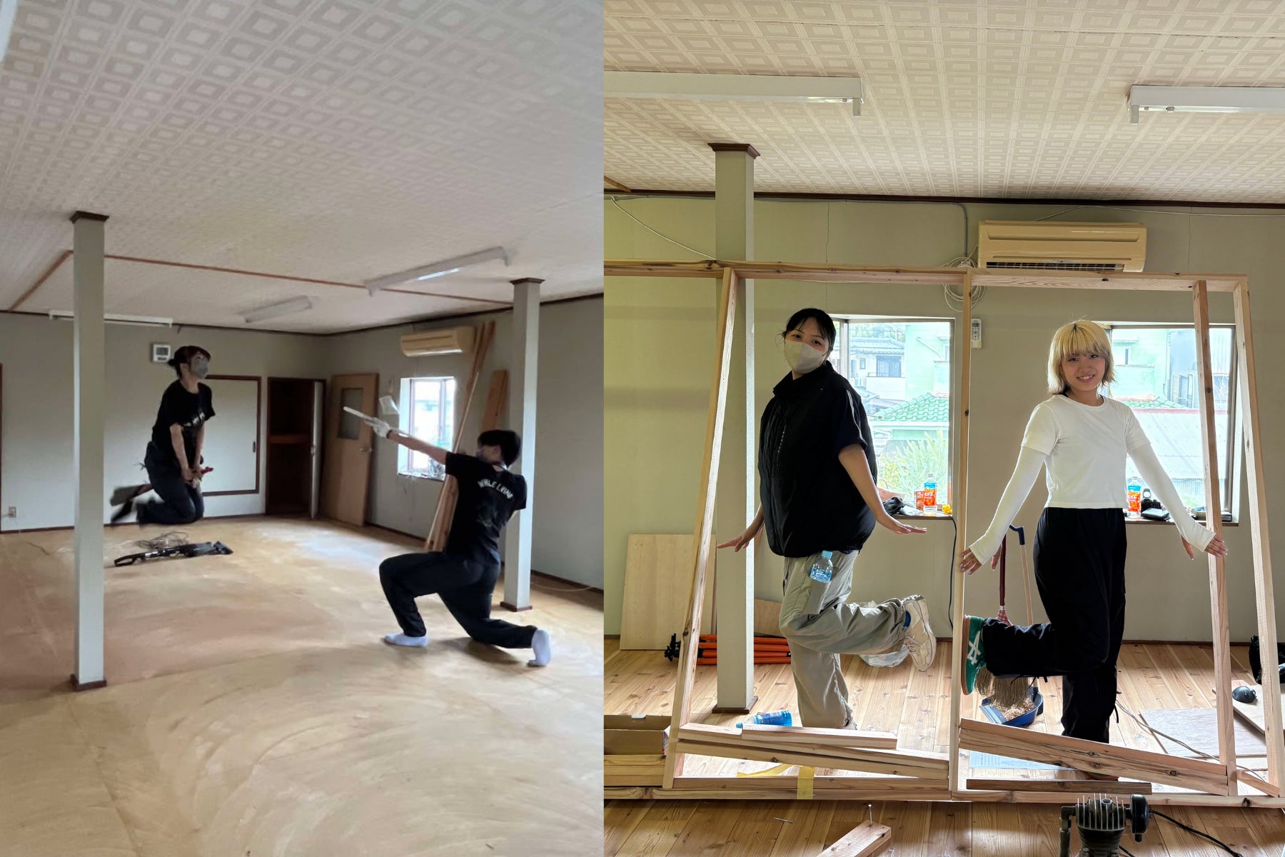 壁を直したり、床を貼ったり。少しずつ、この場所を使えるようにしていく。