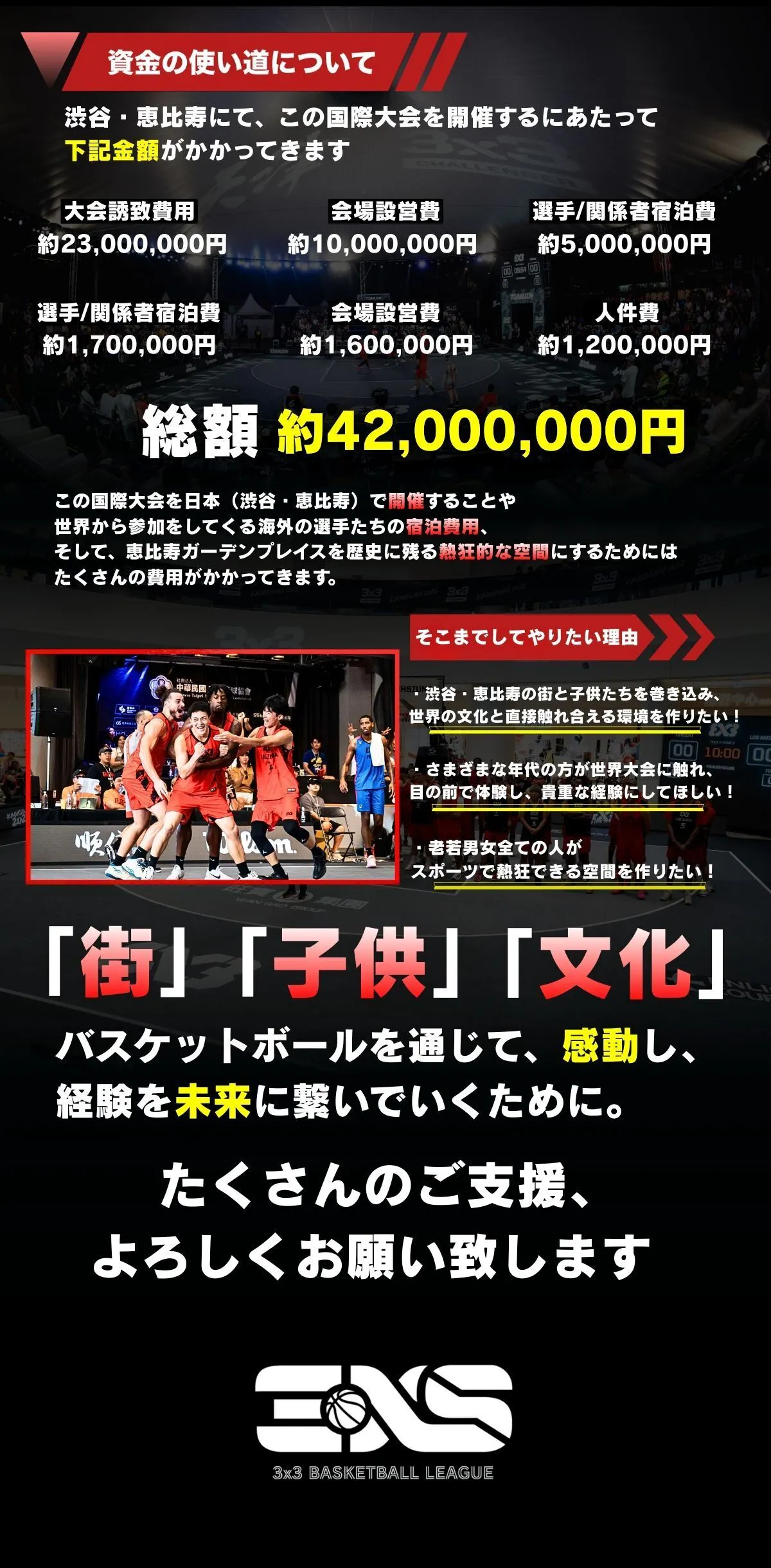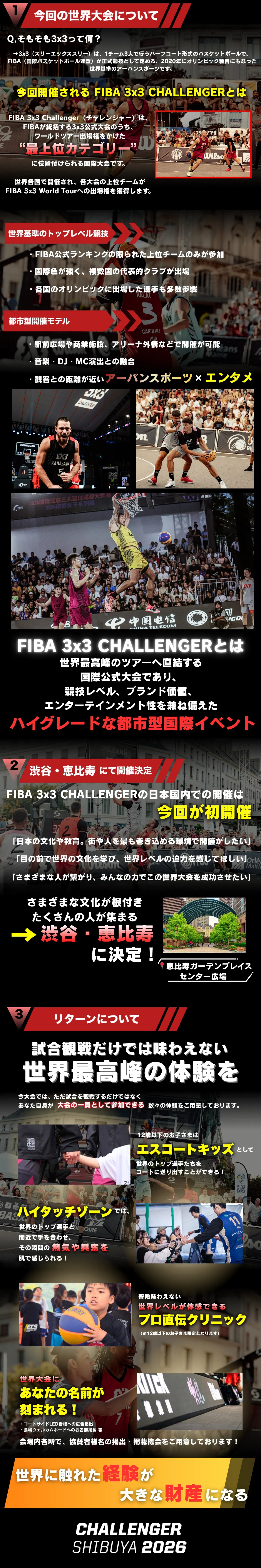 2026/03/20 20:00いつも拝読いただき誠にありがとうございます!今回は我々が準備している選手と交流可能なリターンを紹介させていただきます!【VIPプラン】・選手のハイタッチゾゾーンの入場券【Join usプラン】・選手のハイタッチゾーンの入場券【エスコートキッズ体験プラン】・選手とエスコートキッズ体験ができます!また体験後に専用観戦シートもご用意しております!集合場所:恵比寿ガーデンプレイス 時計台広場 日程:2026年4月18日(土) 13:10集合 2026年4月19日(日) 13:00集合※12歳以下になります。※各日の特典となりますので、両日参加の場合2枚のご購入となります【団体クリニック参加プラン】・2026年4月19日(日)集合場所:恵比寿ガーデンプレイス センター広場 一部9:00~9:30 二部9:30~10:00 三部10:00~10:30 四部10:30~11:00※クリニック参加チームの発表は公式Instagramにて投稿します!※1回の参加権となりますので複数の際には複数のご購入と備考欄に希望のお時間を入力してください【ハイタッチゾーン体験プラン】選手と回数制限なく選手とハイタッチできる特典となっております!日本人選手はもちろん、海外選手と言語の会話も素敵な交流の場となりますので皆様のご支援をお待ちしています! もっと見る