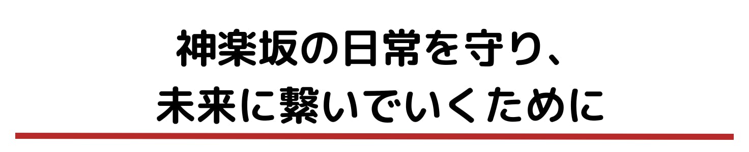 これは私たちにとって、かつてないほど大きな、社運を賭けた挑戦です。 しかし、私たちはこれを「危機」ではなく、神楽坂という街がさらに面白くなるための「絶好のチャンス」だと確信しています。