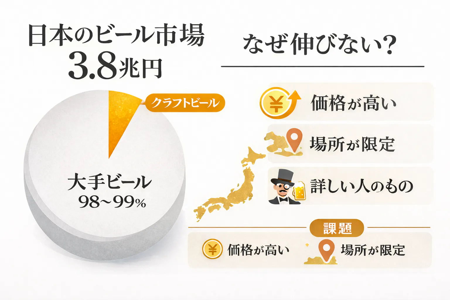 日本のビール市場は約3.8兆円。