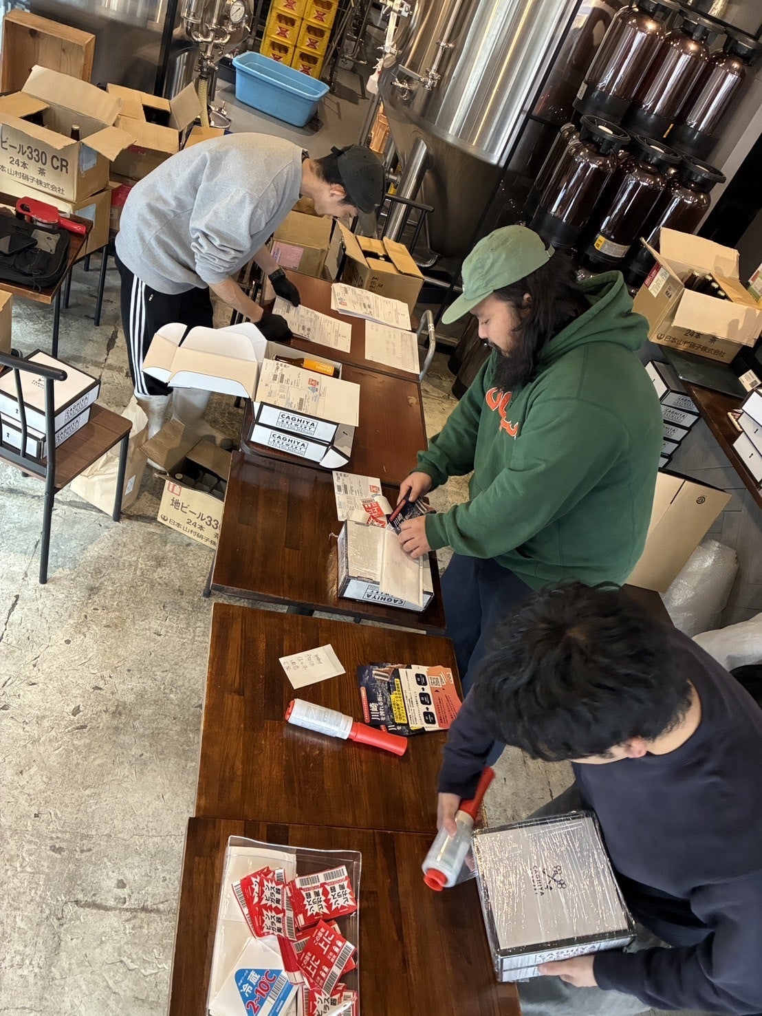 ありがたいことに注文が殺到しまして。普段はそれぞれの持ち場で動いてるスタッフたちが、この日ばかりはブルワリーメンバー総出で出荷作業にあたりました。