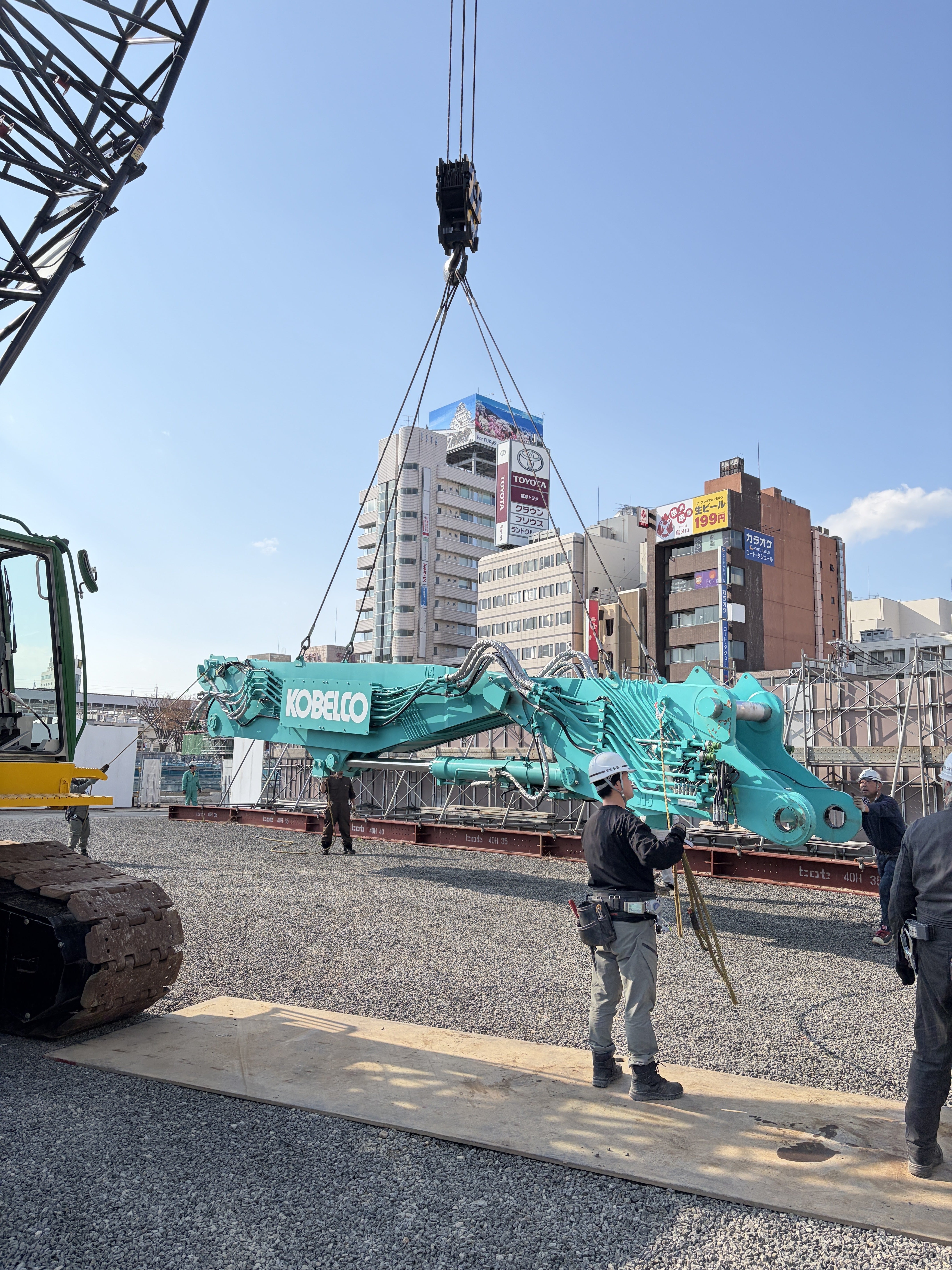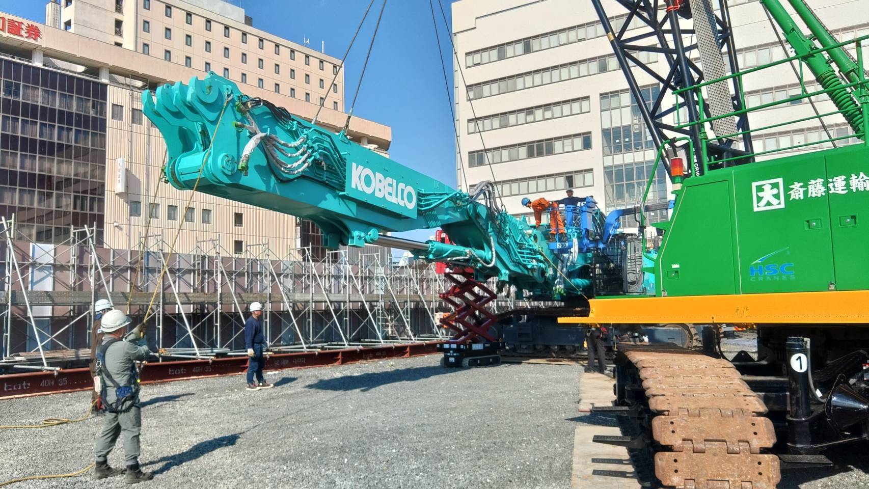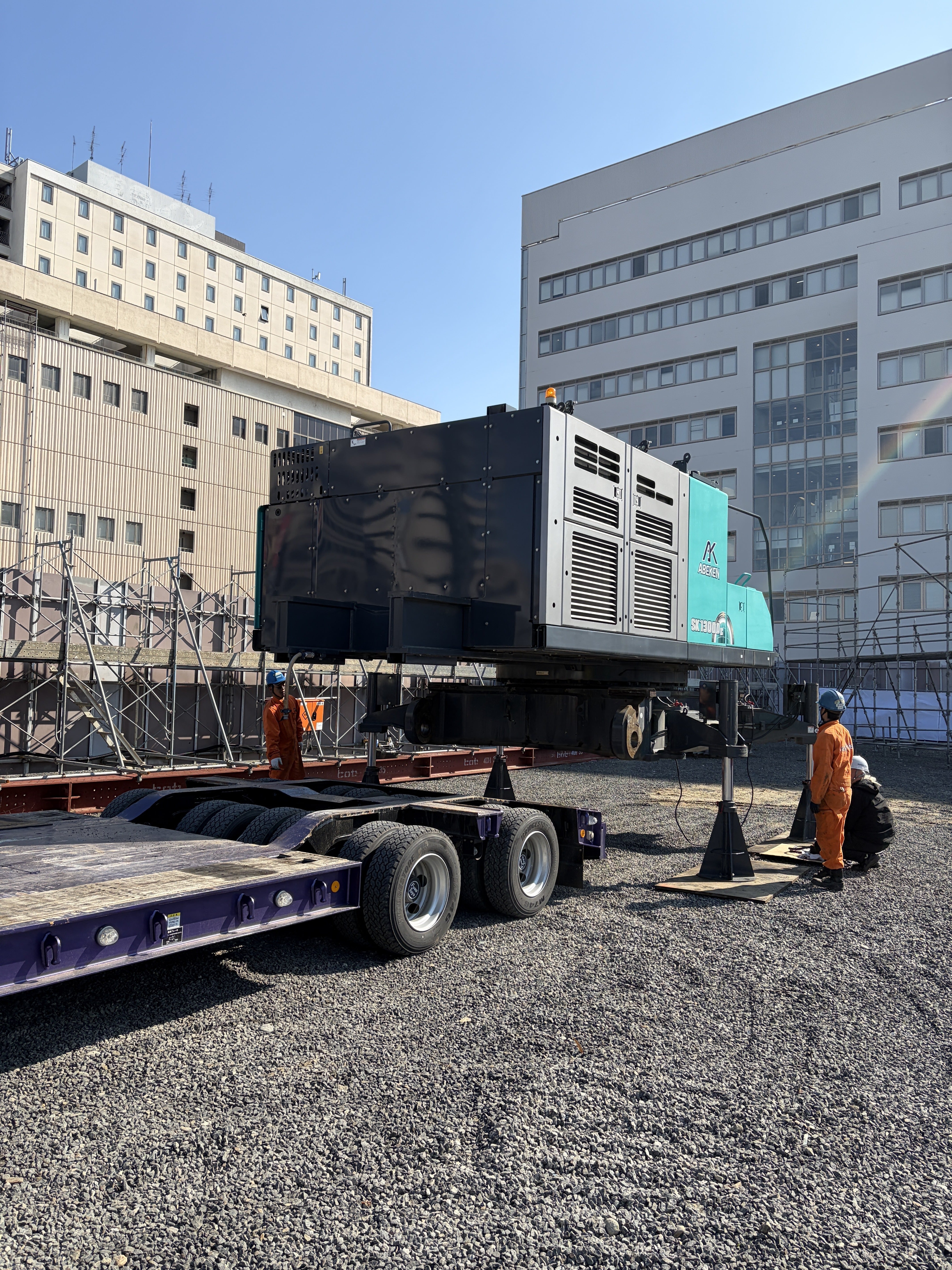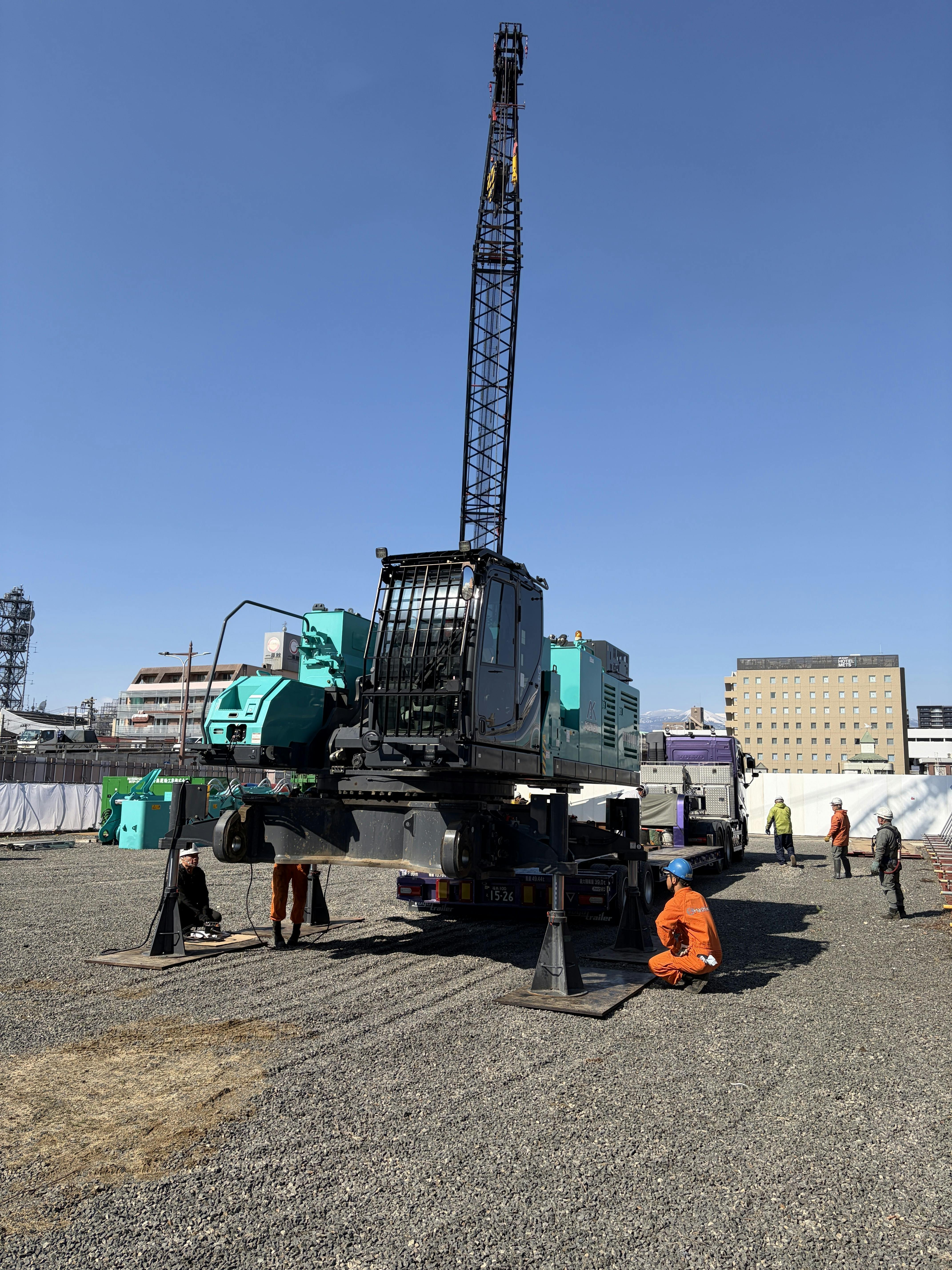 この機械も昨日のクレーンに引き続き、総重量100トンを超える大型重機です!!今回の全高は、なんと35m!!通常のビルなら11階~12階に相当する高さです!!