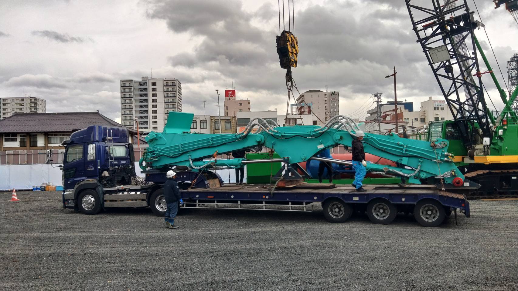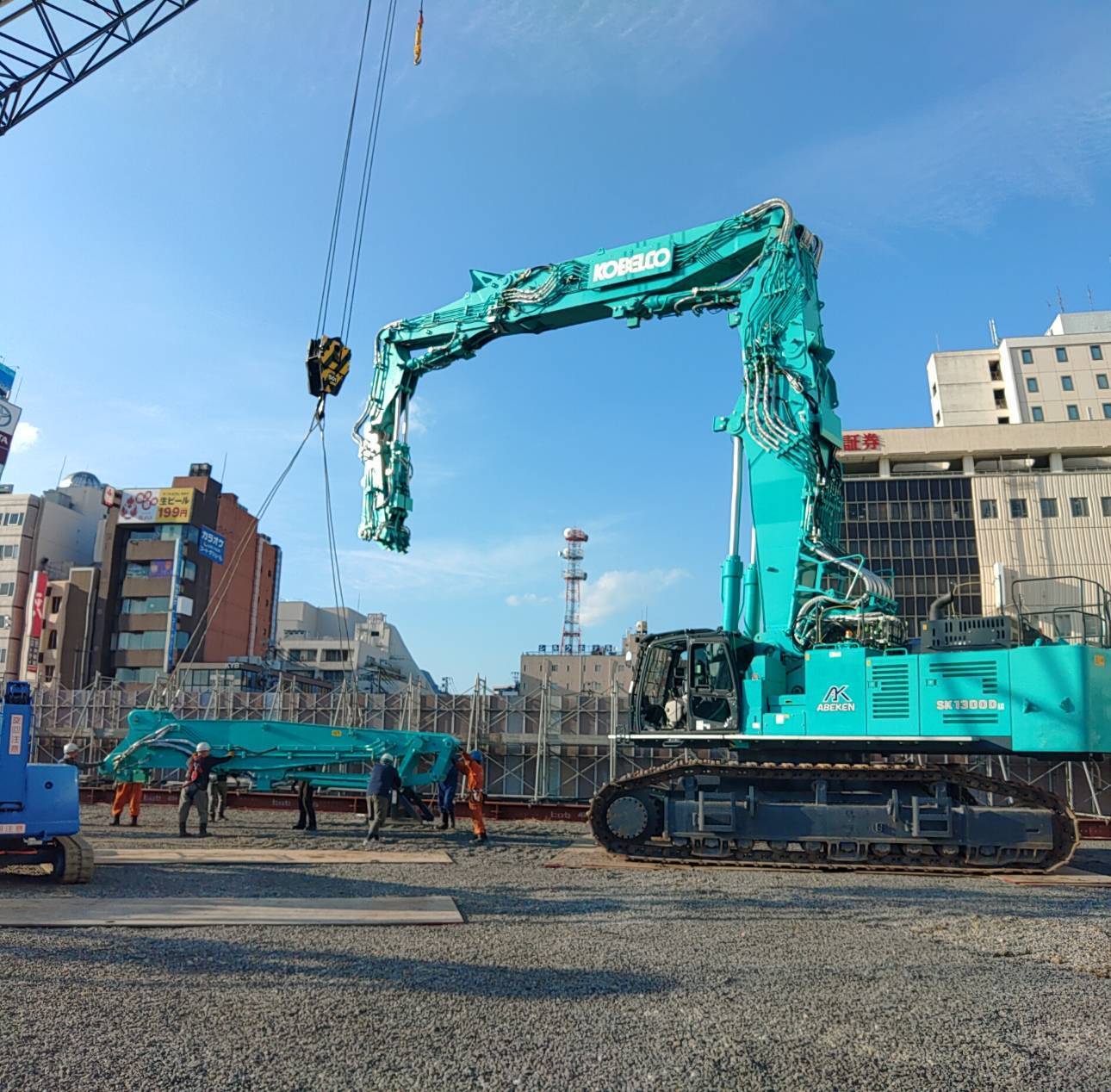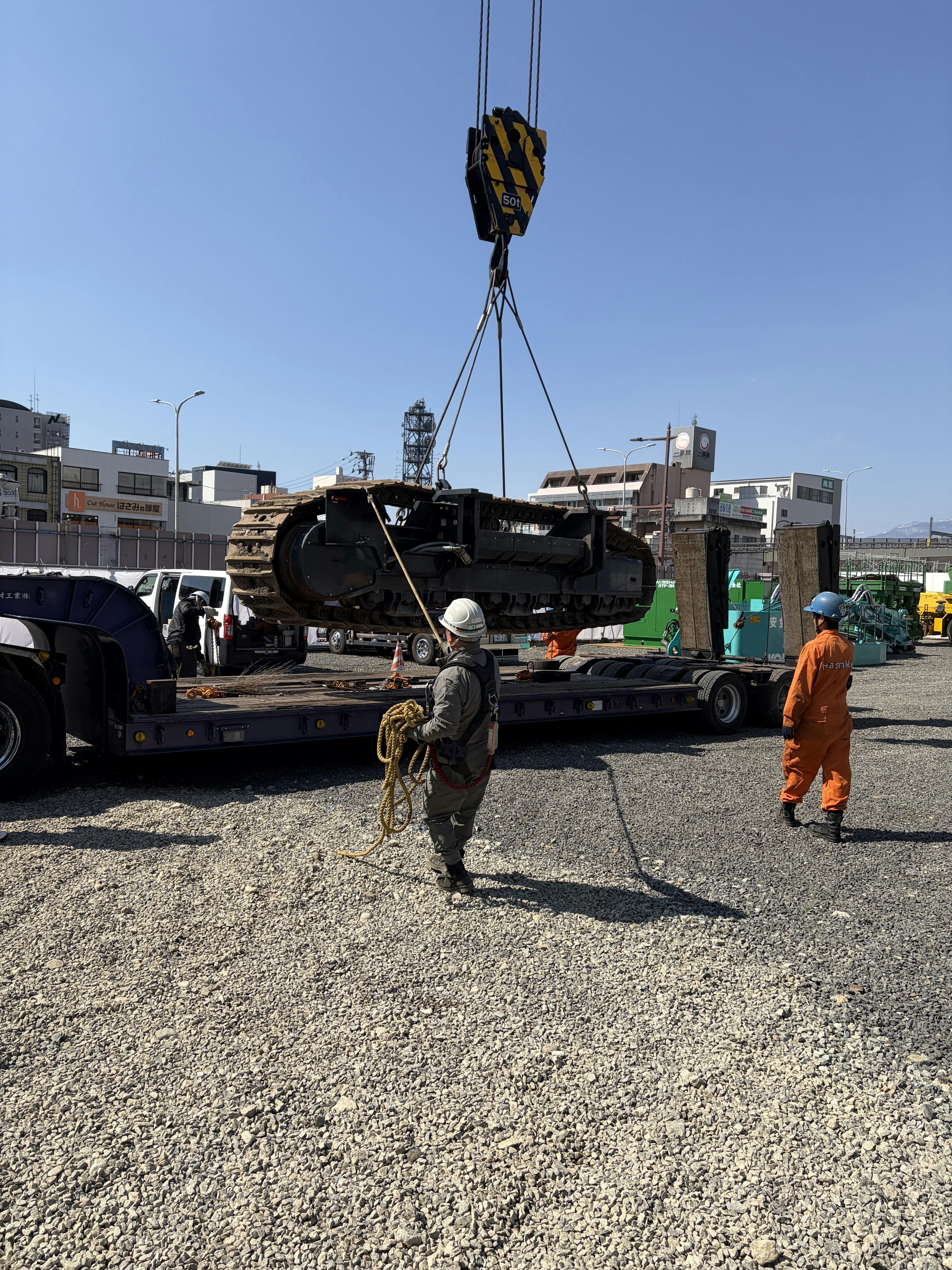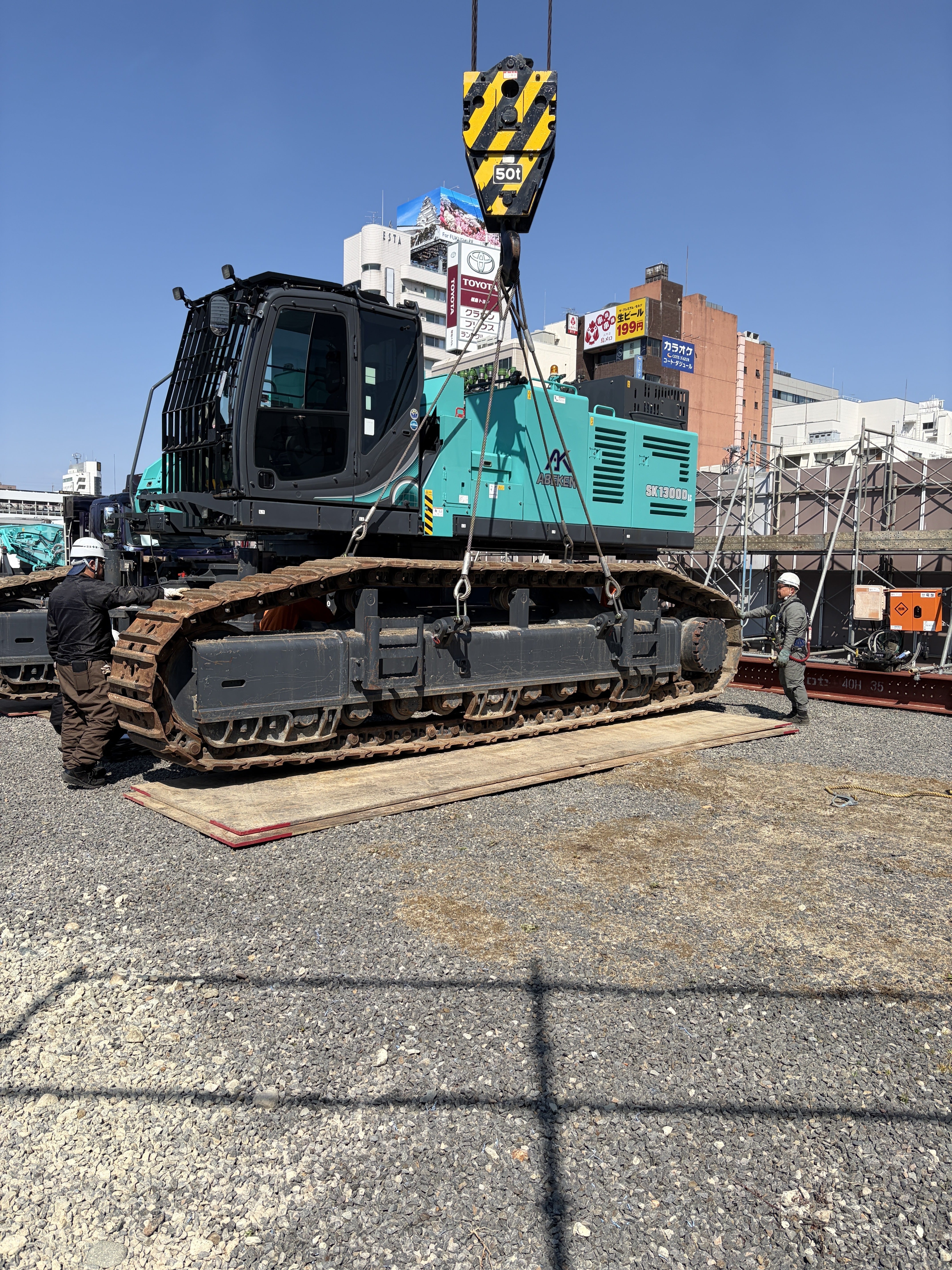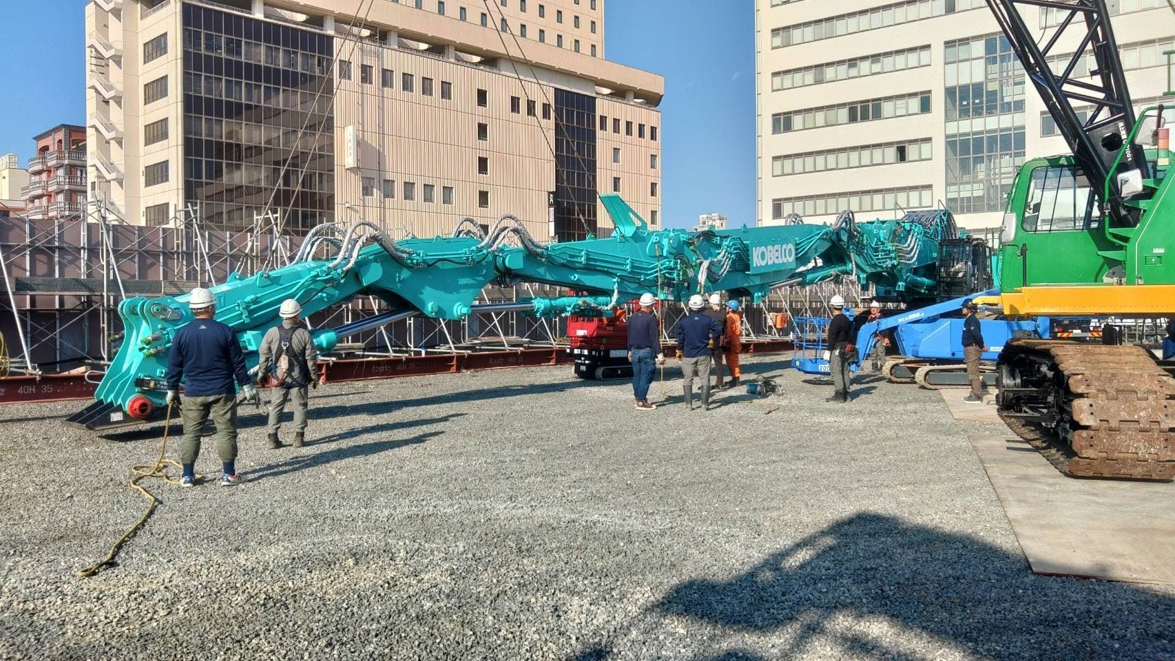 この機械も昨日のクレーンに引き続き、総重量100トンを超える大型重機です!!今回の全高は、なんと35m!!通常のビルなら11階~12階に相当する高さです!!