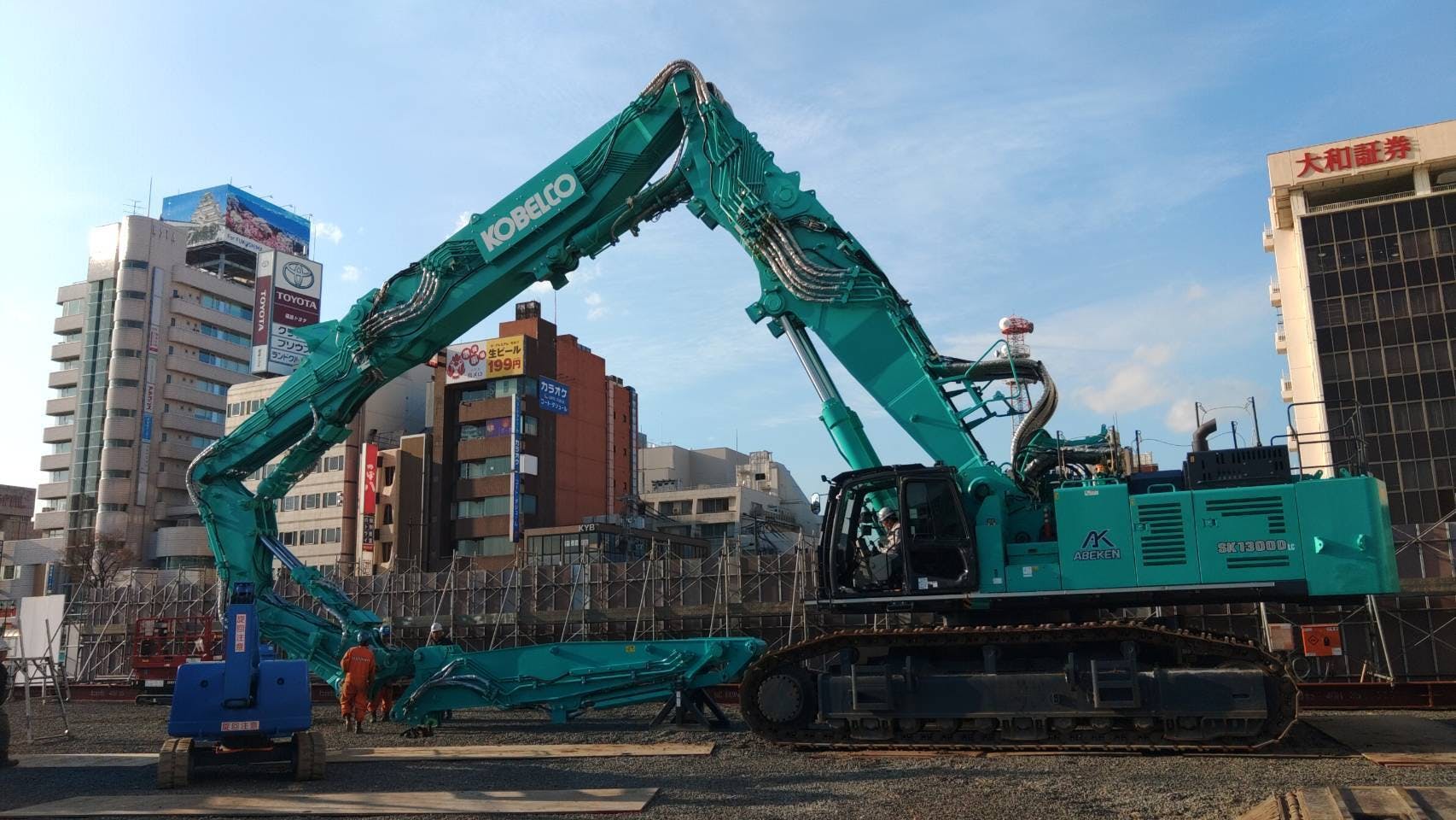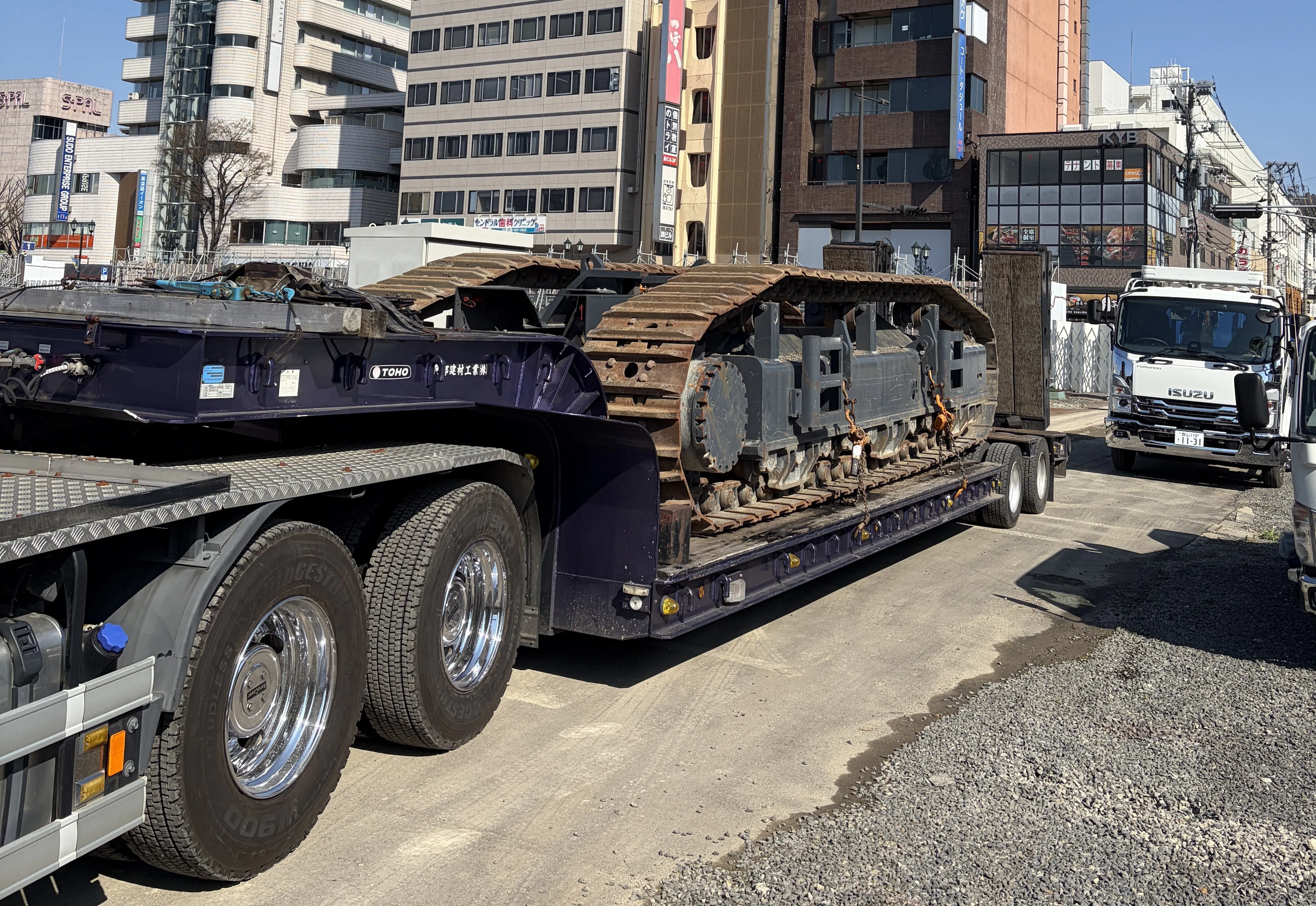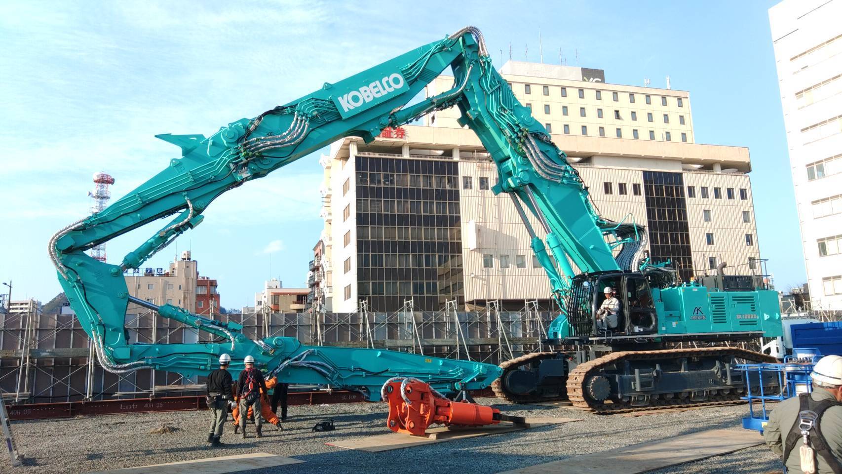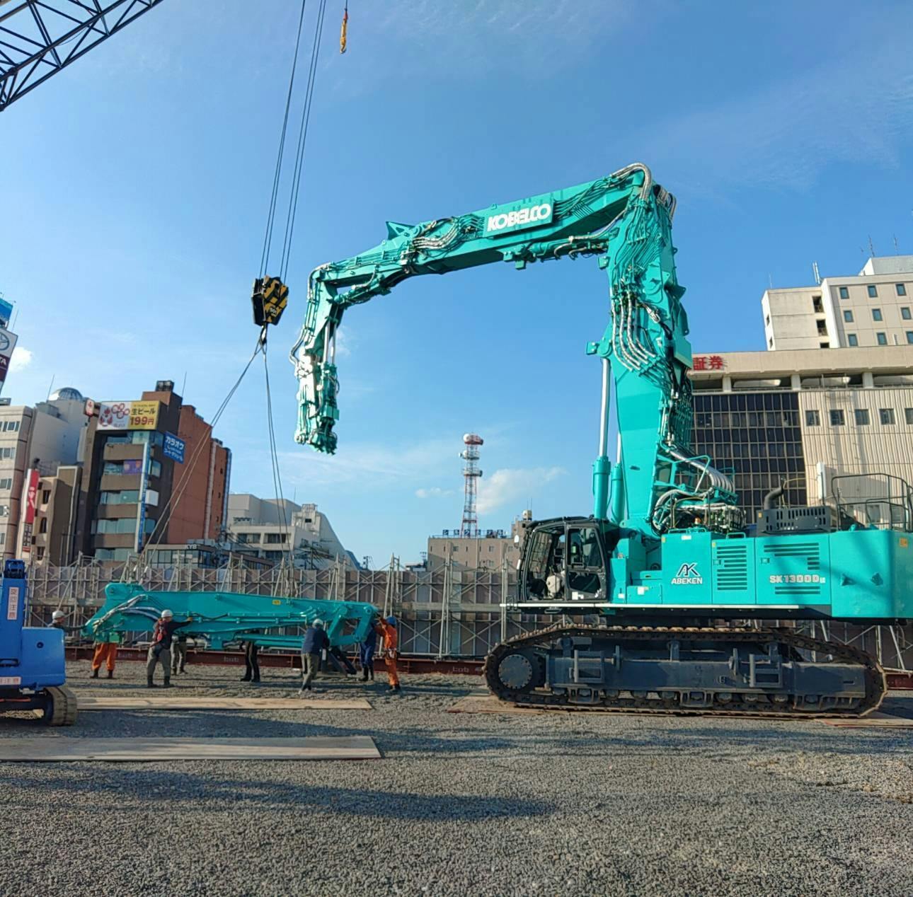 この機械も昨日のクレーンに引き続き、総重量100トンを超える大型重機です!!今回の全高は、なんと35m!!通常のビルなら11階~12階に相当する高さです!!