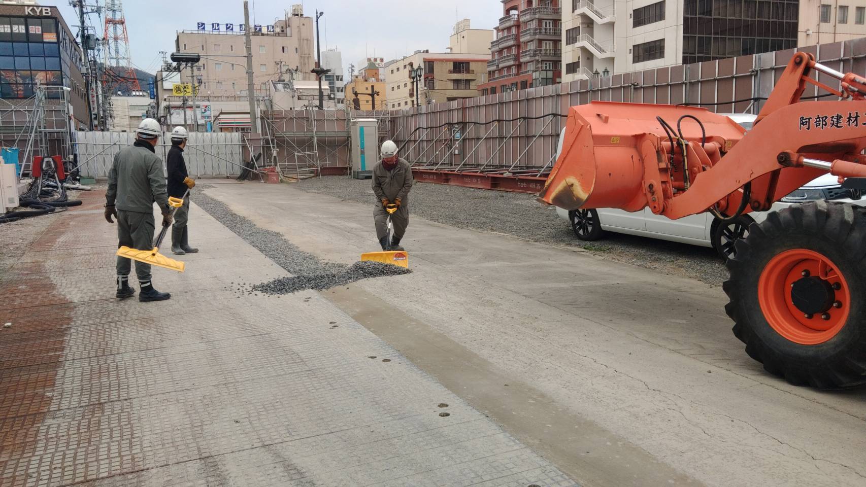 アップした写真は降雨対策のため、砂利を敷きならしている様子です。