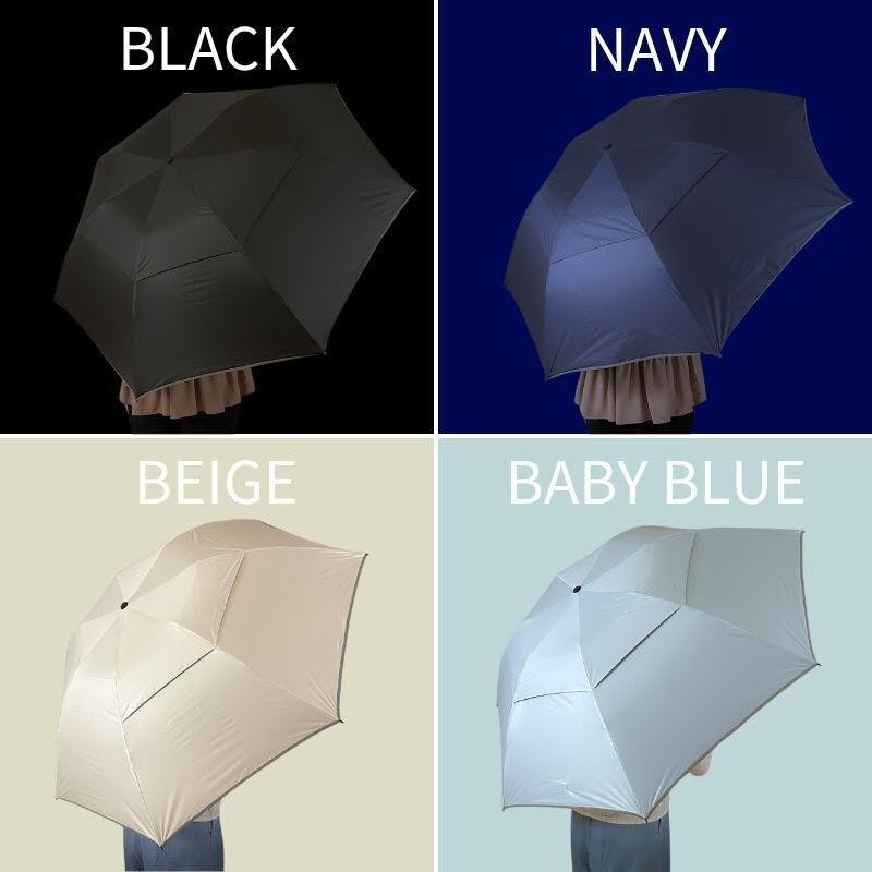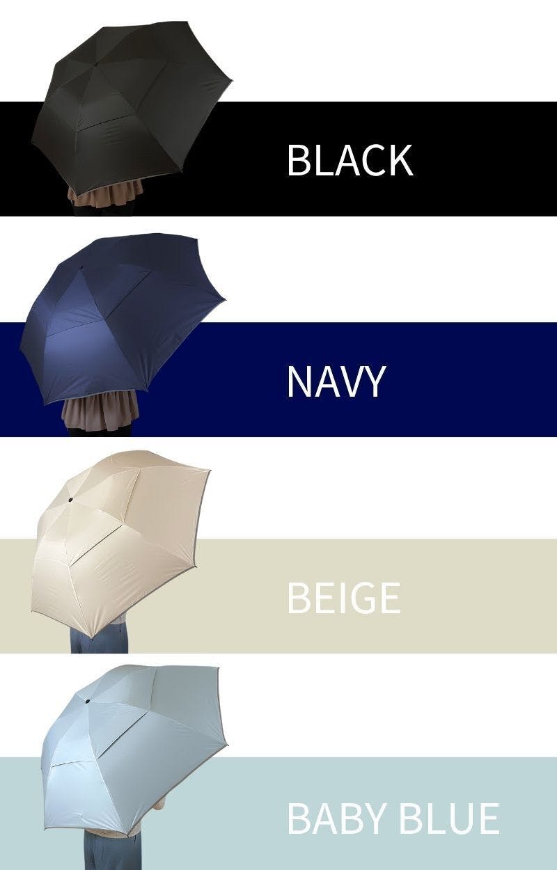 通常とは異なる構造と使いやすさを追求した機能で、雨でも暑い日でも濡らさない、超広ワイドで強風仕様の晴雨兼用逆折りたたみ傘です。