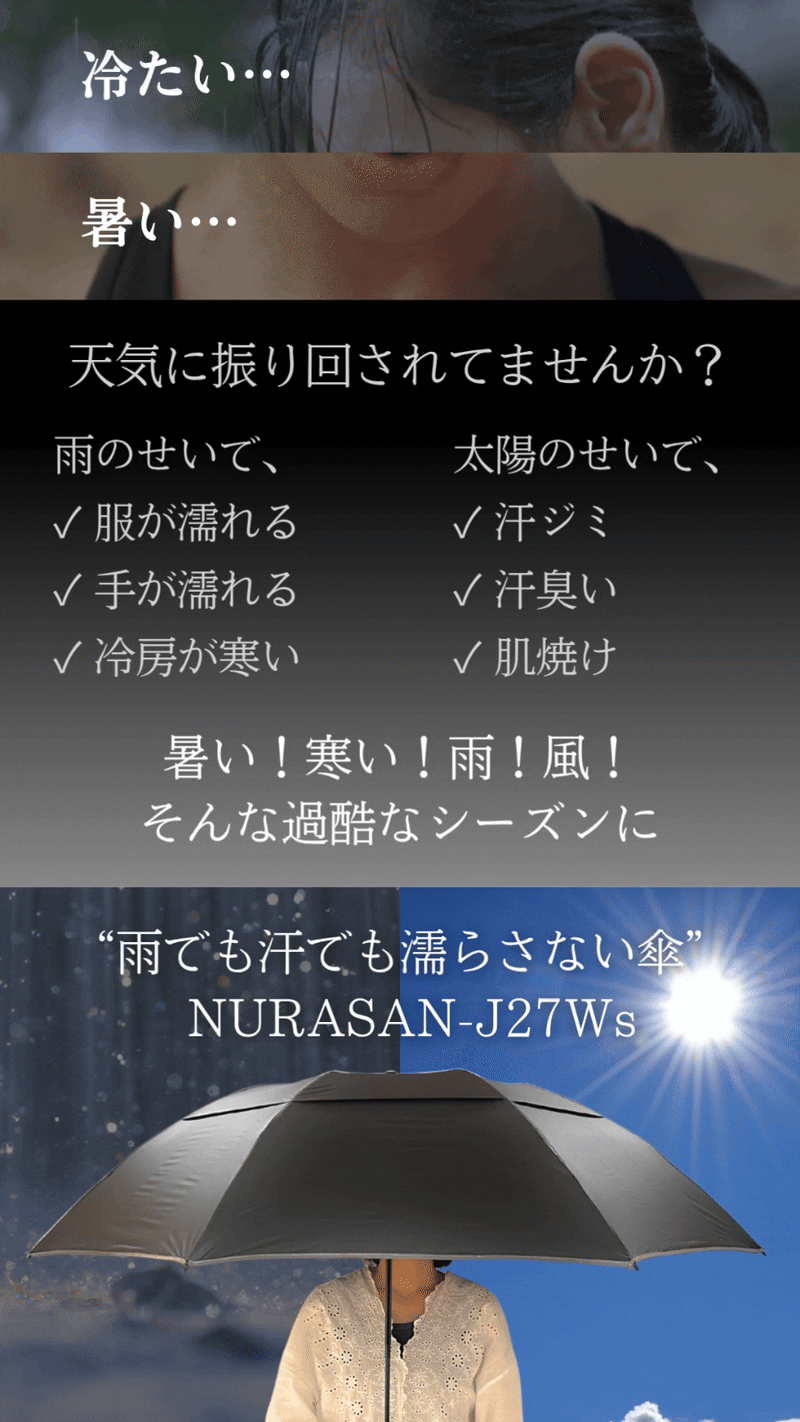 ワンタッチで開き、たたんでも濡れない。さらにはお肌を守り、涼しさまで。