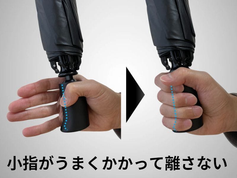小指がガッチリ引っかかるので、突然の風でもしっかり握っていられます。