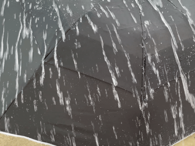 雨ははじいてそのまま地面へ転がり落ちるので、内側への雨の侵入を許しません。