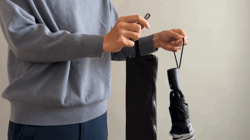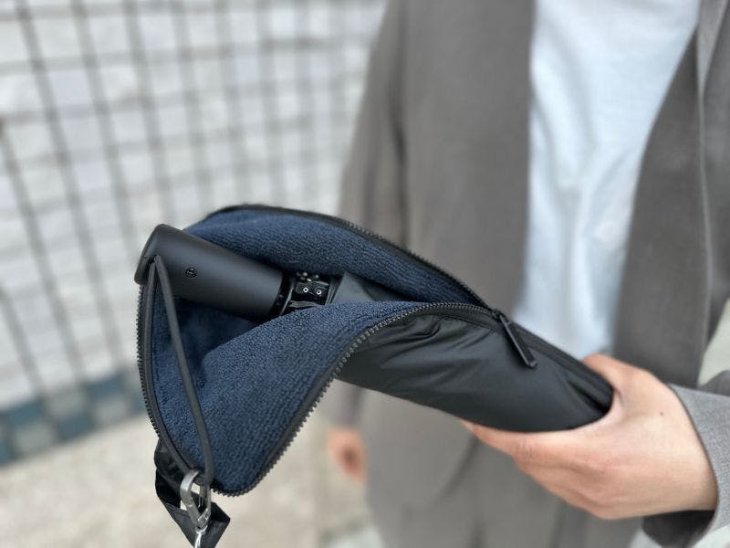 内側のマイクロファイバーが雨粒を吸収するので、使用後もサッとそのままバッグにしまえます。