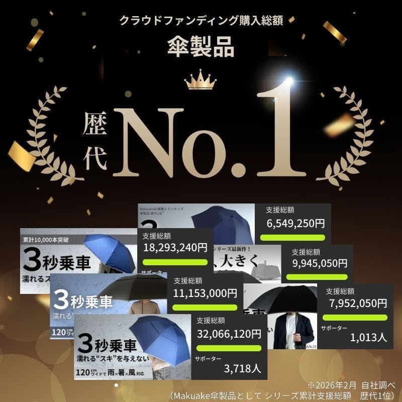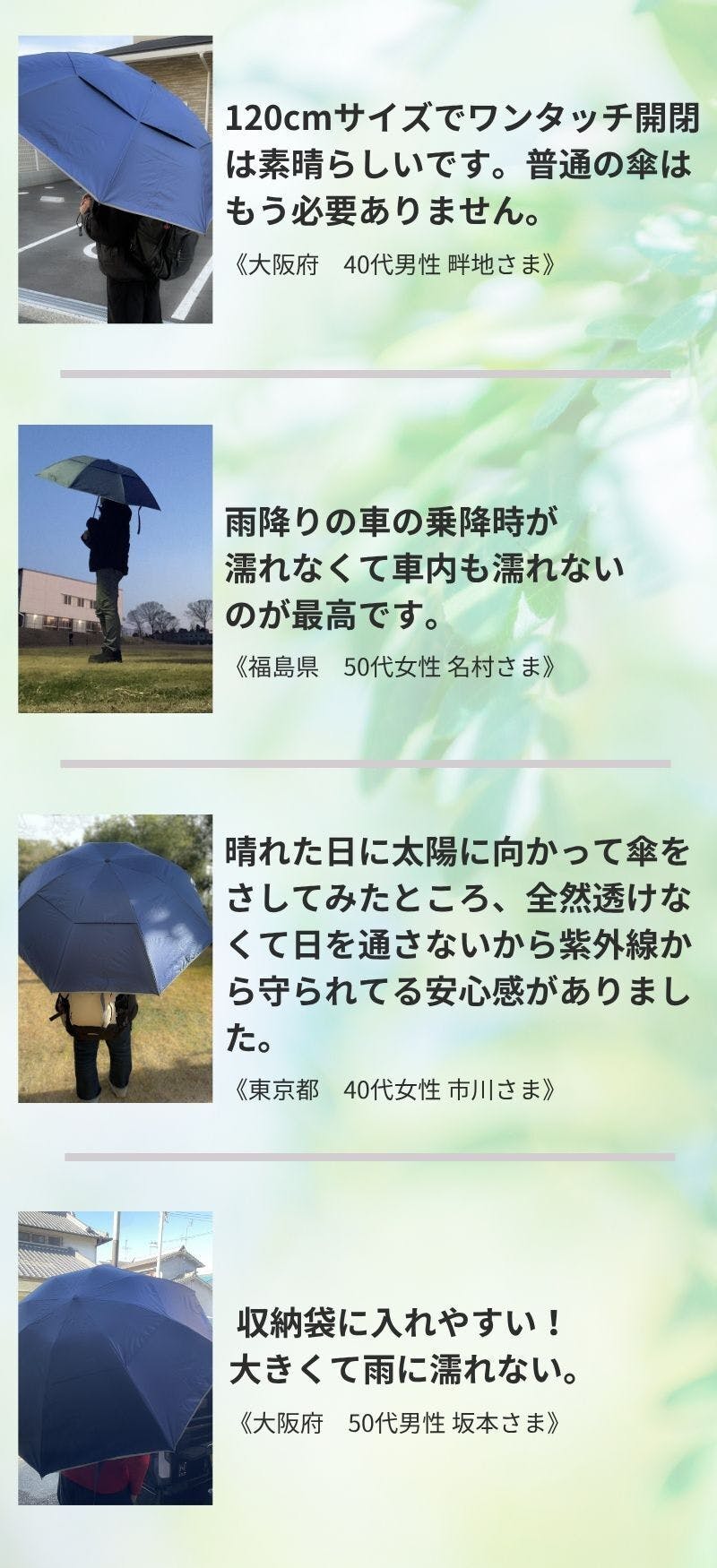 長傘も不要で本傘として活躍するビッグサイズです。