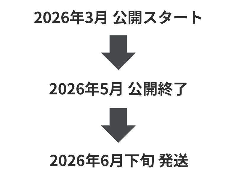 プロジェクト終了後の配送となりますので、2026年6月末発送・お届けを予定しています。