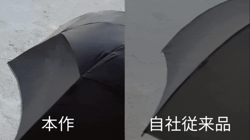 閉じた傘を手動で縮めるときの負荷は、従来より12%軽減することに成功。