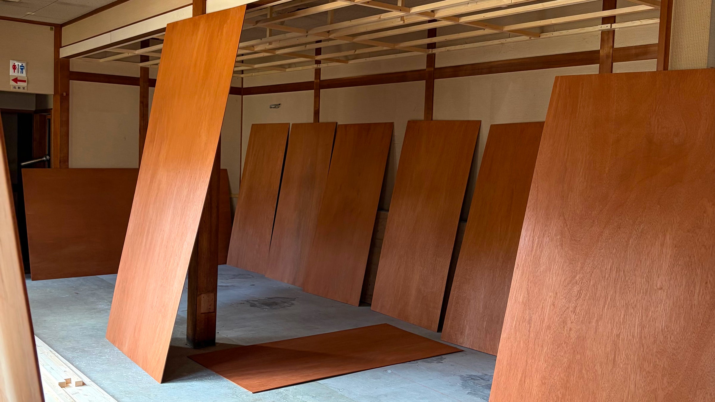 是非天井に貼られたラワン合板の仕上がりを確認してみてください。